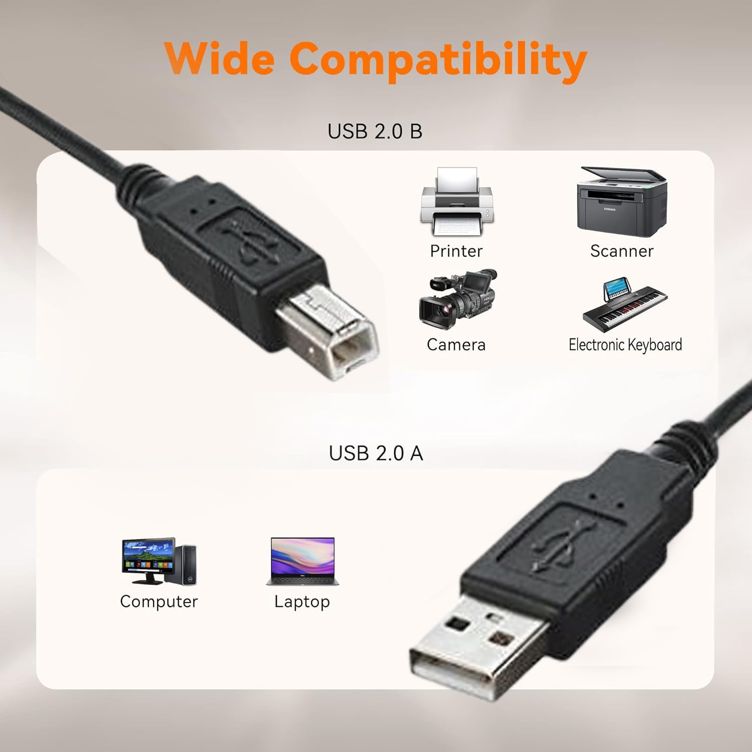 ✅ Universal USB 2.0 A to B Cable – Designed for printers, scanners, fax machines, and USB-B compatible devices; ideal for home and office setups.