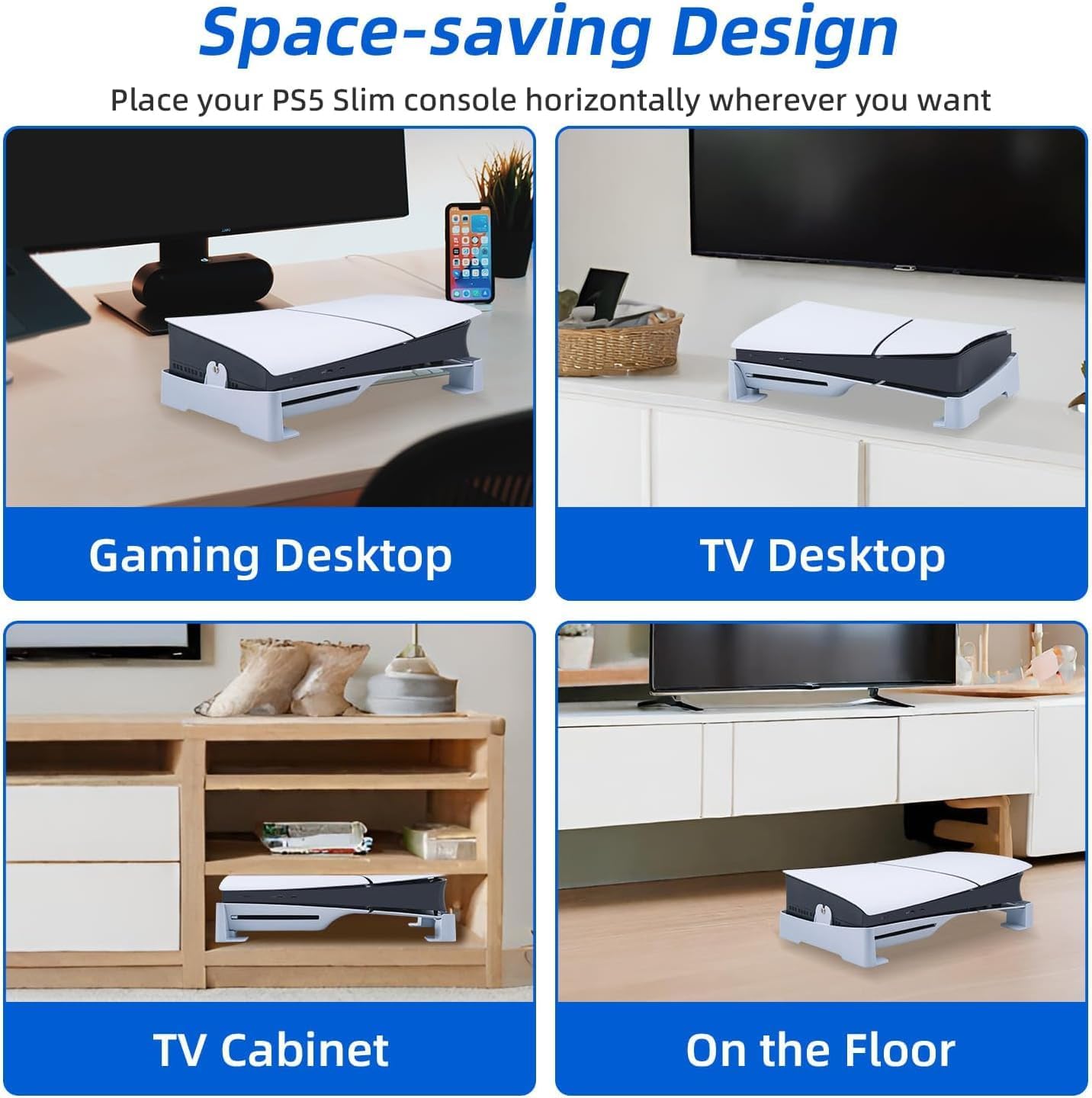 SPACE-SAVING SOLUTION: Designed to hold the PS5 Slim horizontally, this stand efficiently utilizes your available space. Its sleek, compact structure allows you to neatly organize your gaming area.