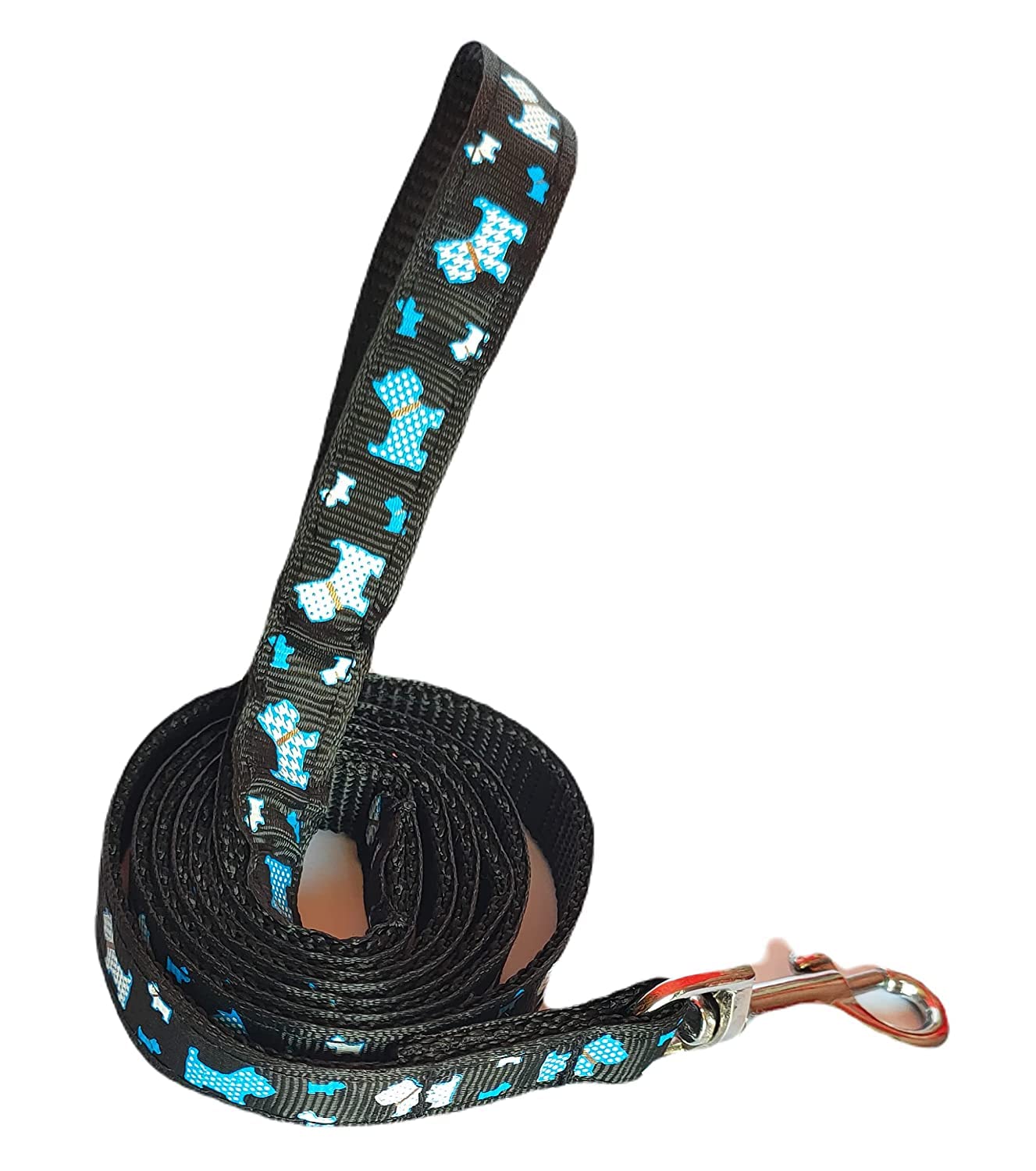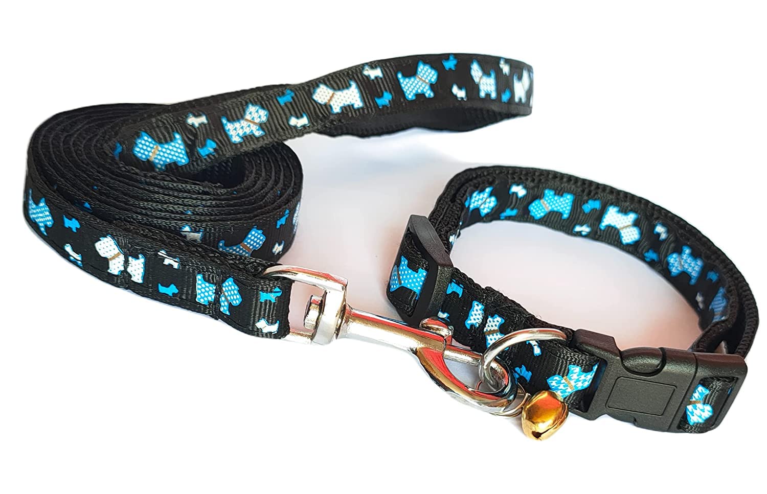 PSK PET MART Dog Collar and Leash Set Puppy Printed, Adjustable Nylon Collar with Leash for Cat and Small Dogs, Quick Release and Breathable Collar Set for Puppies, Dog & Cat 10 MM (Black)
