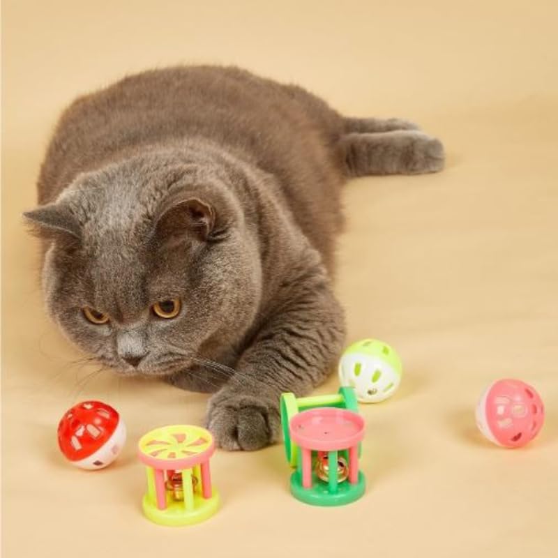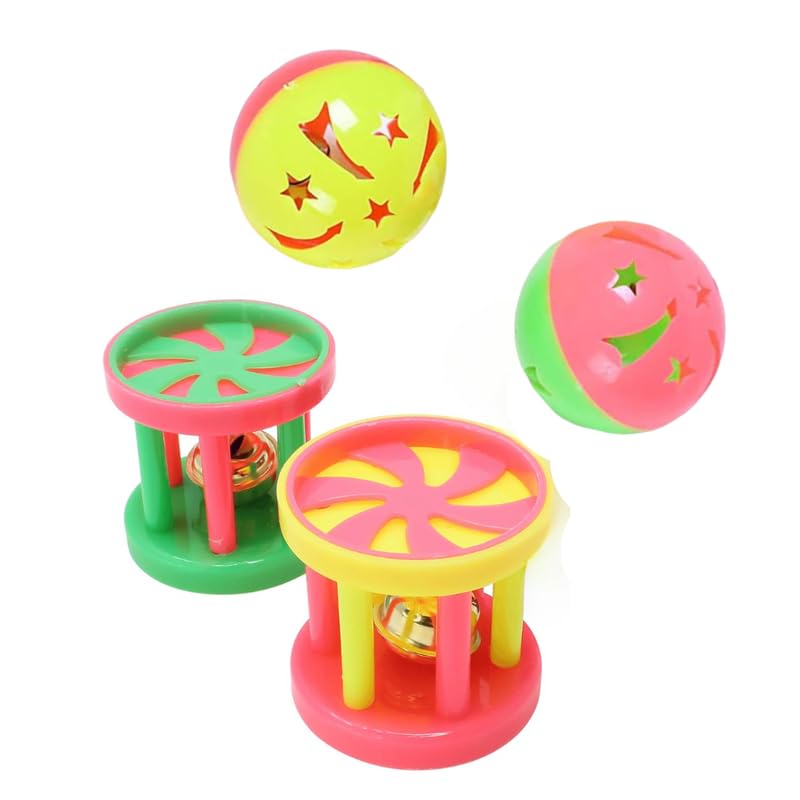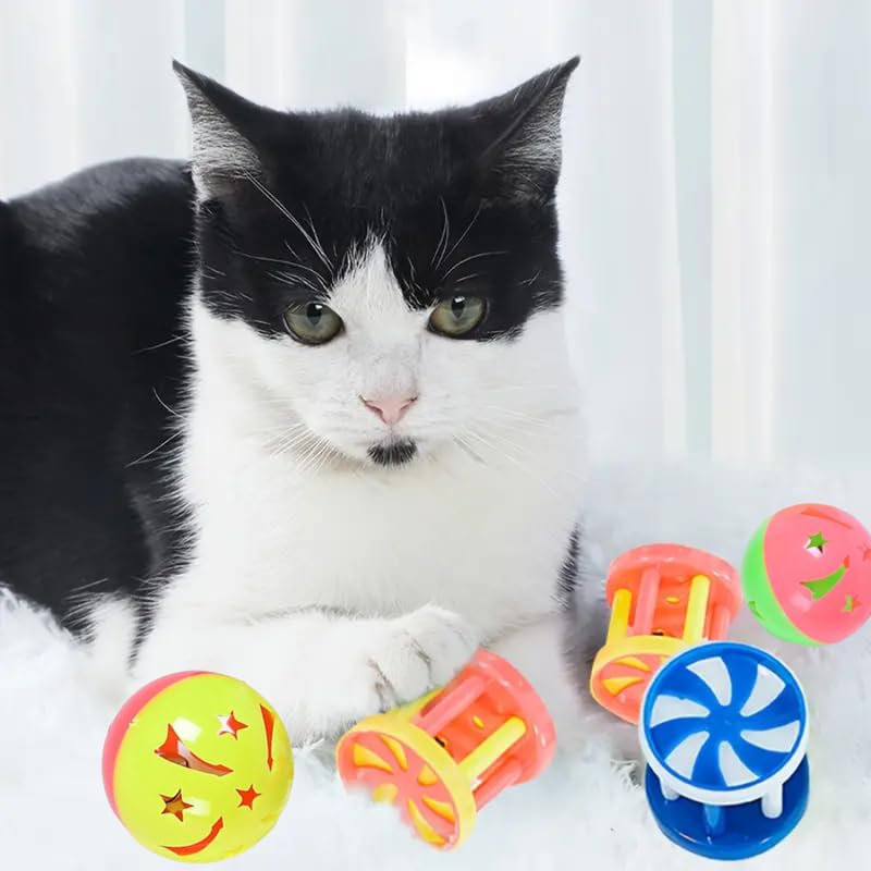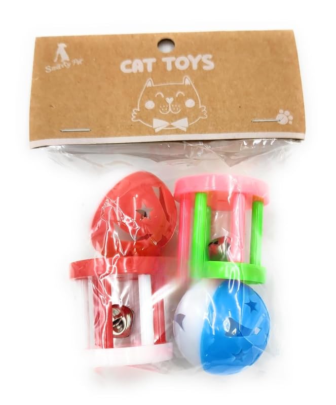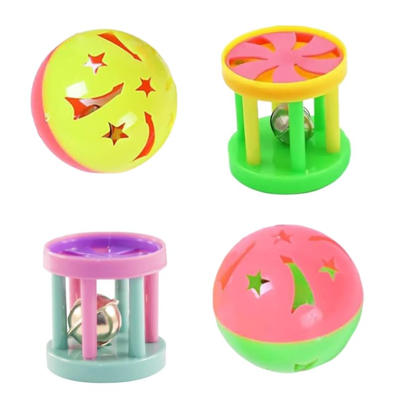 PSK PET MART Mini Cute Pets Toys and Accessories Cat Training Toys Hollow Cat Toy Ball with Bell Jingle Toys for cat Pack of 4 Pcs Set