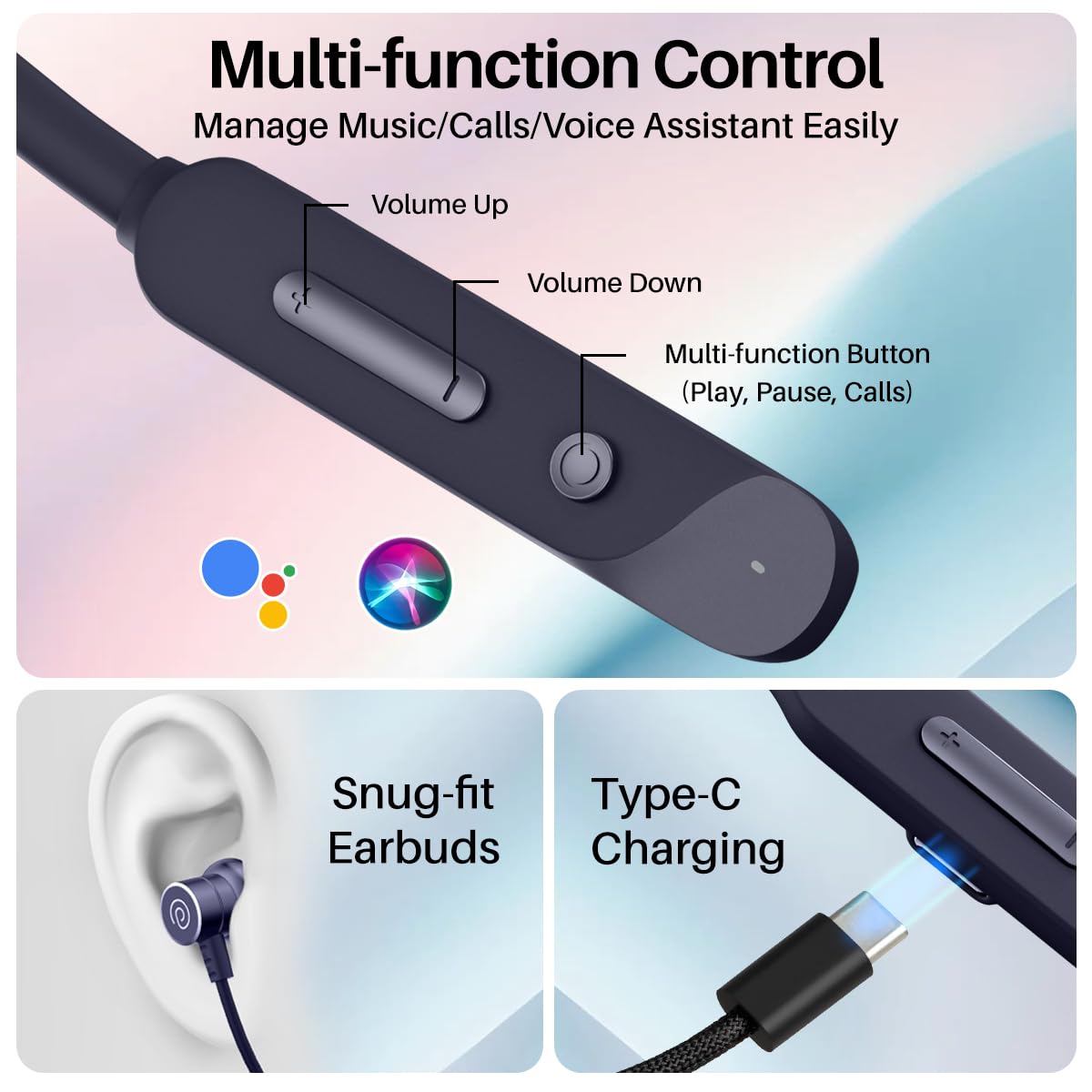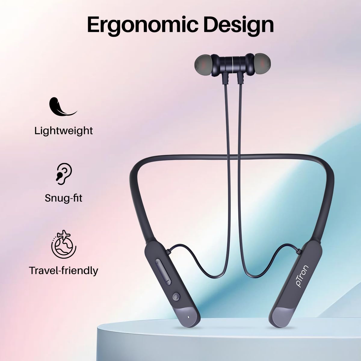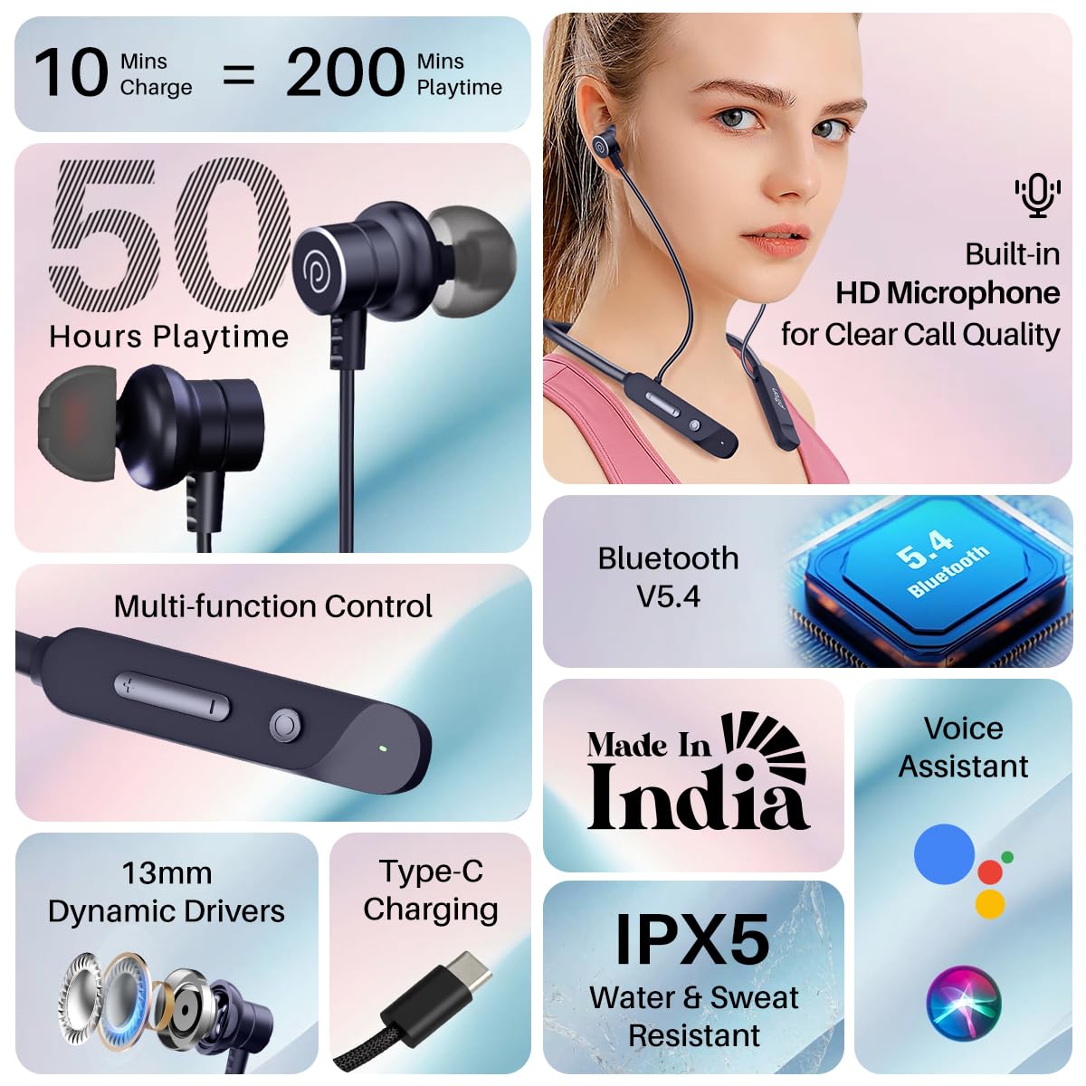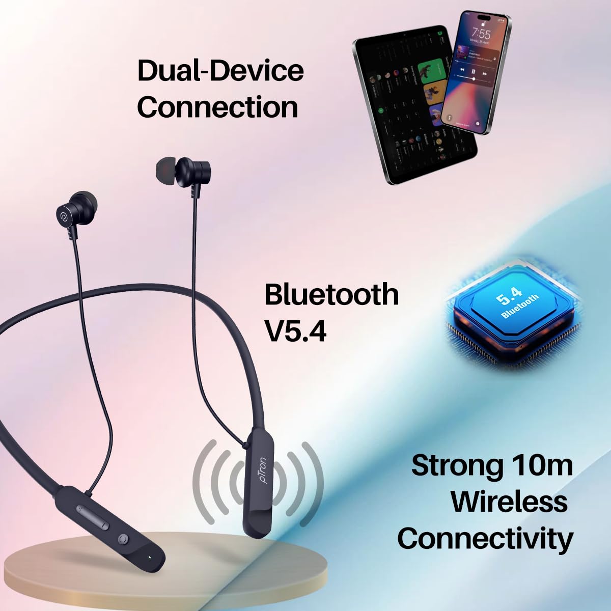 pTron Tangent Buzz w/ 50Hrs Playtime, Pristine Sound, Dual-Device Pairing, Bluetooth 5.4 Wireless in-Ear Earphones with Mic, Hall Switch Function, Voice Assistant, Type-C Fast Charging & IPX5 (Blue)
