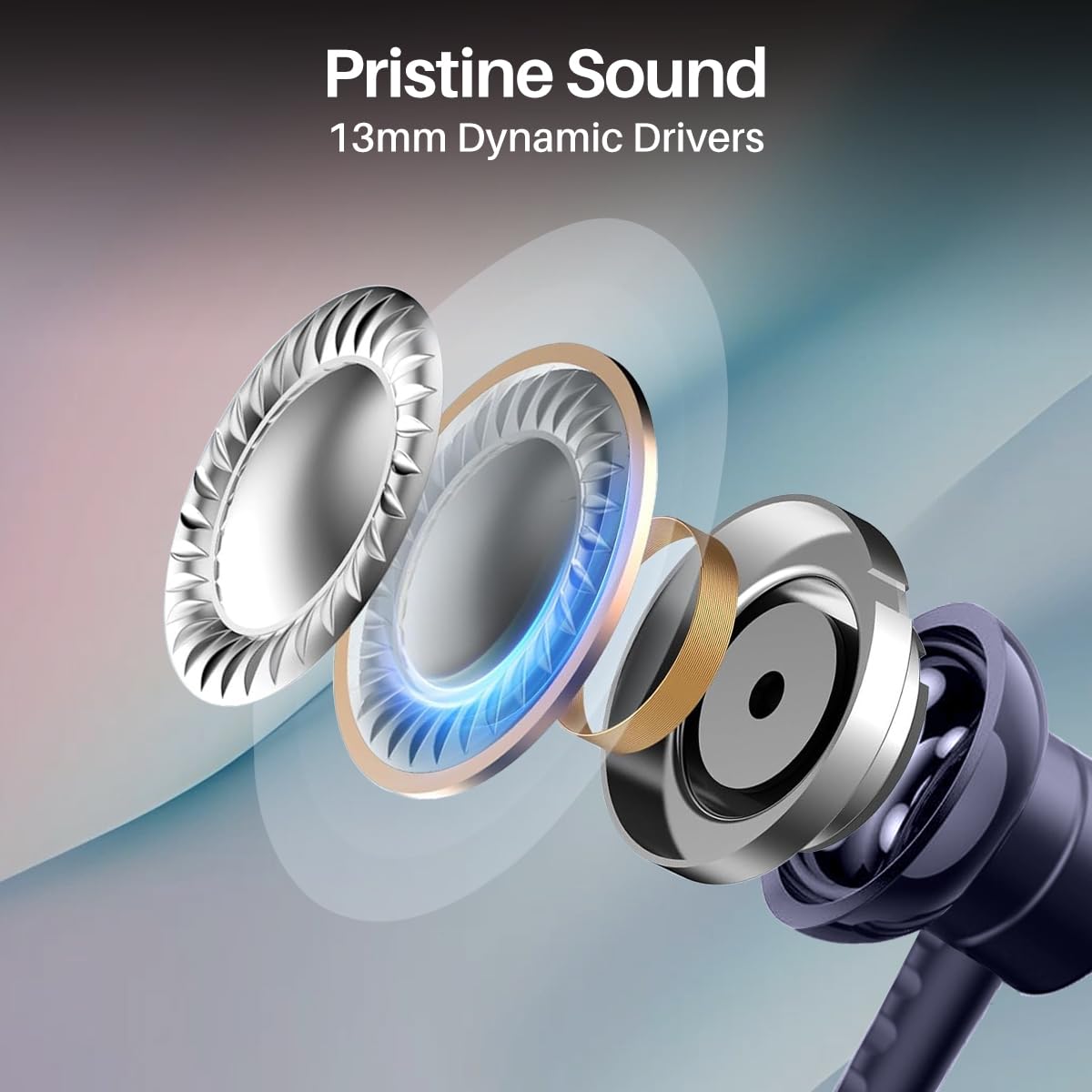 13mm Dynamic Drivers ensure Pristine Sound Quality with Deep Bass, Crisp Treble, and Clean Vocals || Snug-fit Earbuds Design & Silicon Ear tips Minimizes External Noises for Immersive Listening