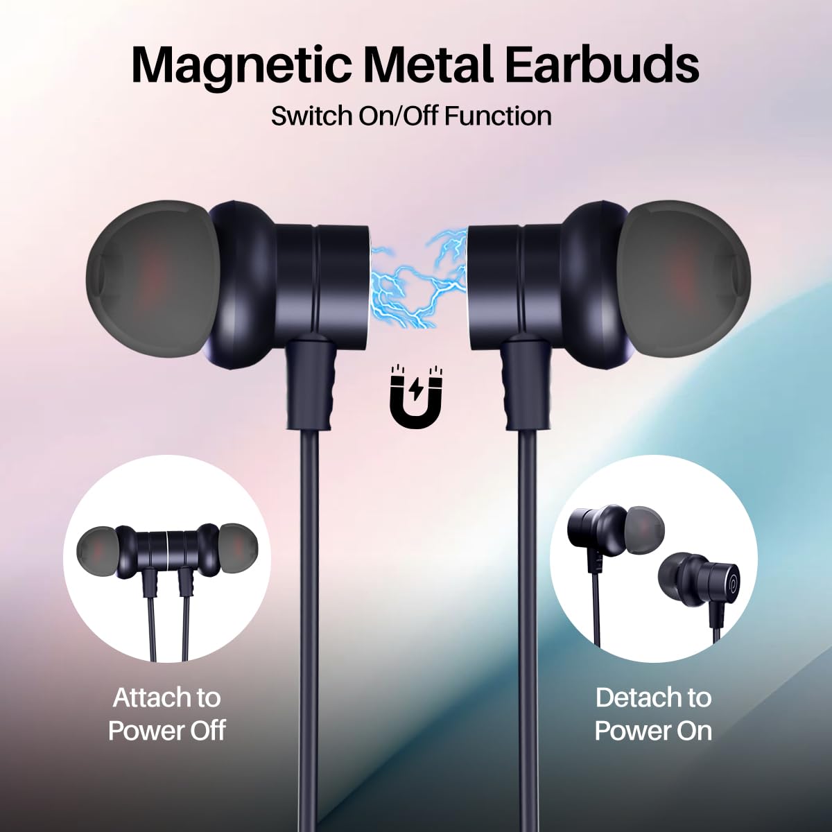 Metal Magnetic Earbuds with Hall Switch On/Off Function (Attach Buds for Power Off / Detach Buds for Power On ) || In-line Multi-function Buttons to Manage Music/Calls/Voice Assistant Easily