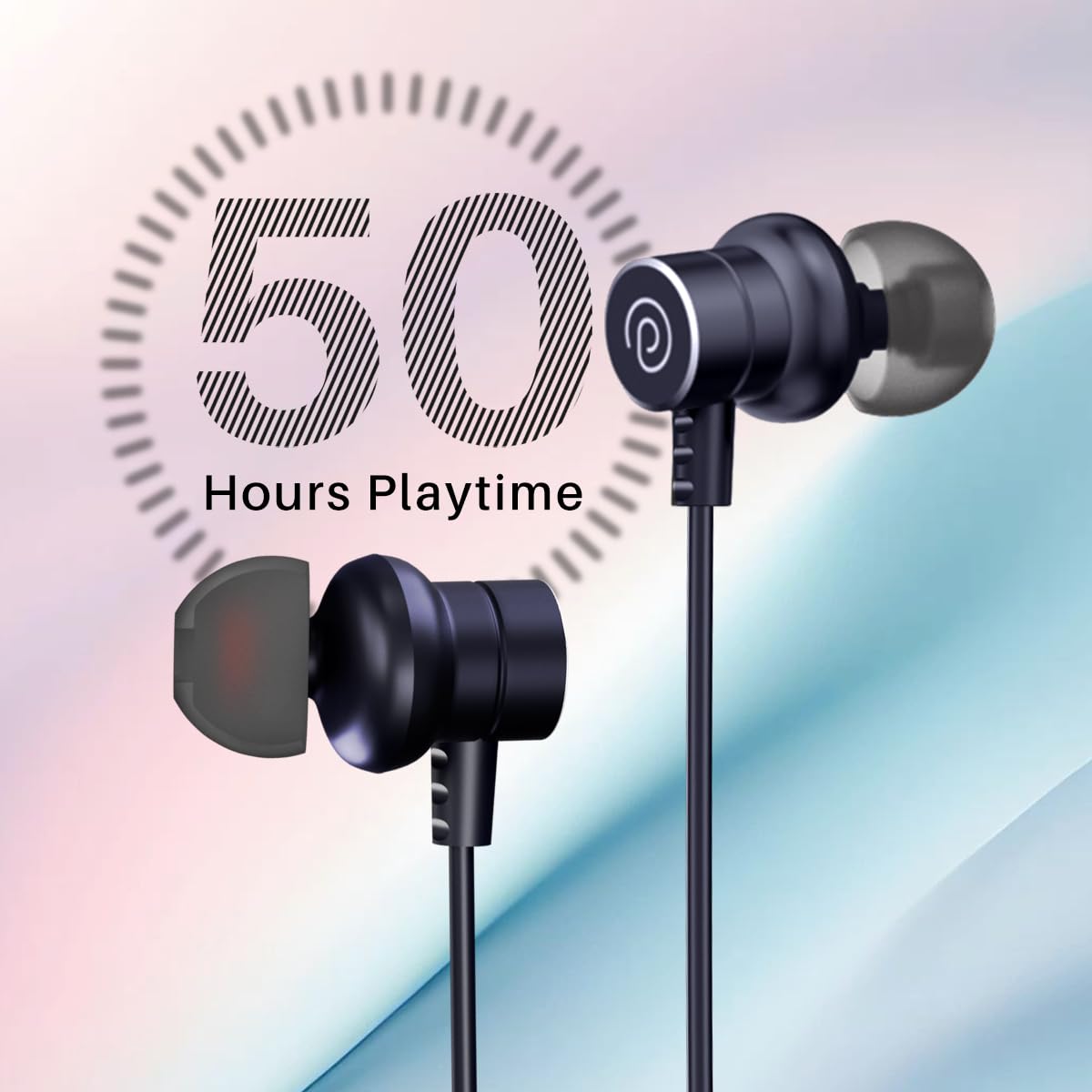 Massive 50 Hours of non-stop Playback Time with 1.5 hours of full charging. pTron Tangent Buzz wireless headphones support Type-C Charging || Built-in HD Microphone ensures Clear Call Quality