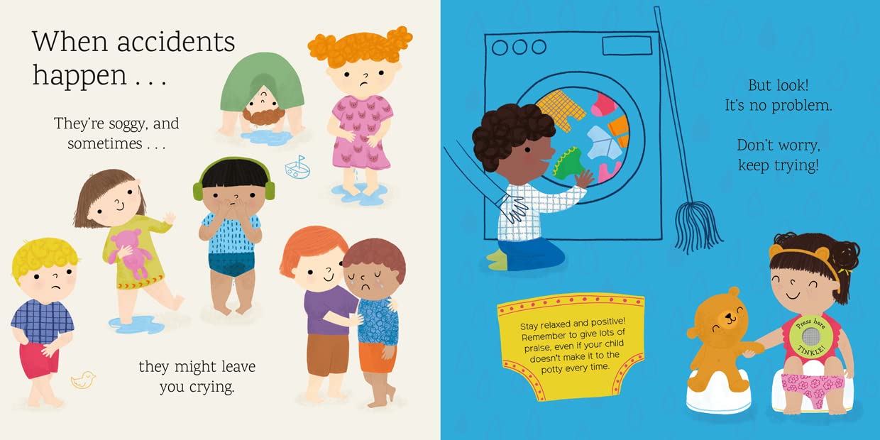 Reassure the accidents and celebrate the successes with this fresh, fun and encouraging introduction to potty training – featuring six super sounds! Little readers will be lead through step-by-step: from meeting the potty and learning about handwashing to choosing their own pants. With a jolly rhyming text and top tips for parents and carers throughout, this is the perfect book to get your child excited about using their potty.