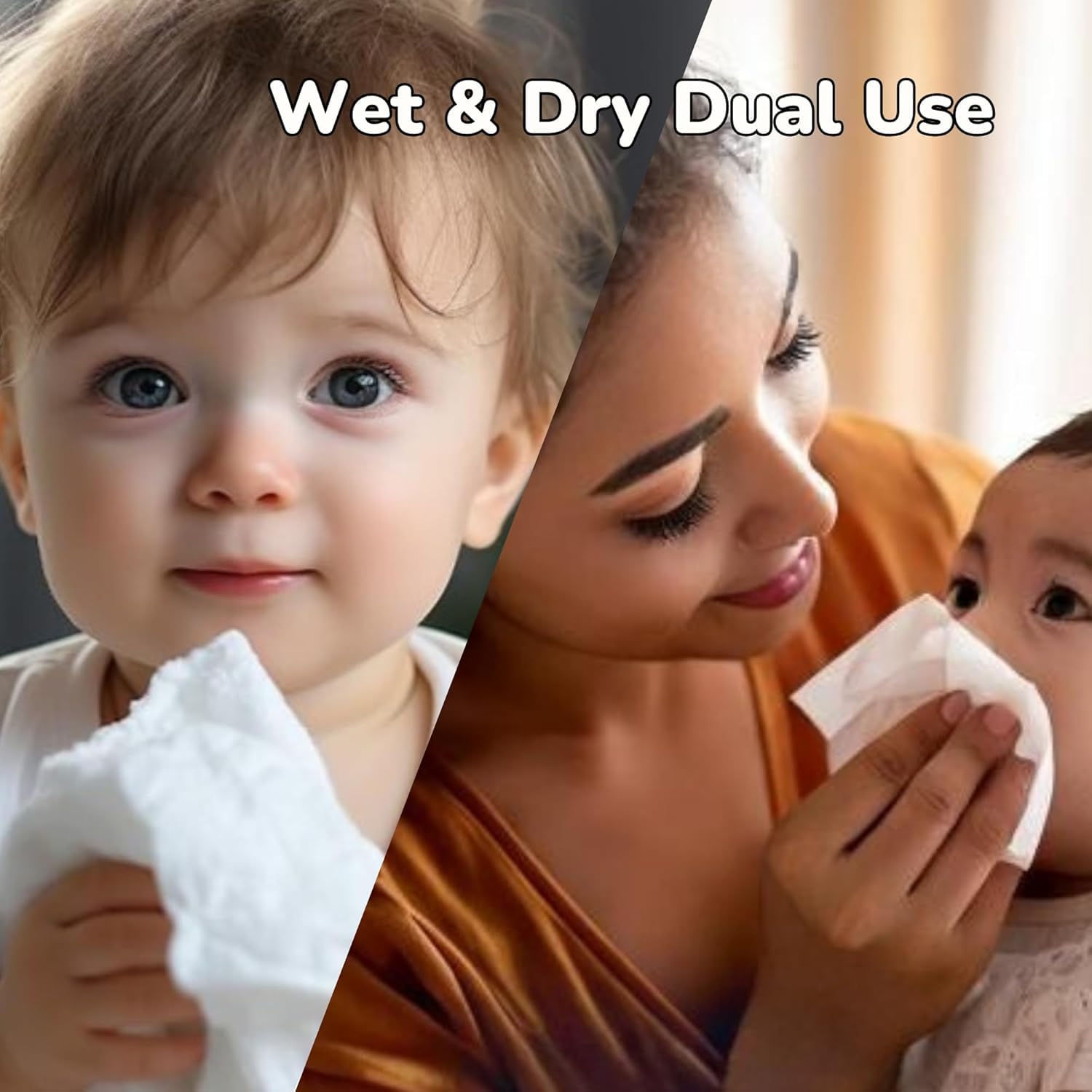 Versatile Usage: These disposable cotton tissue dry baby wipes for new born cleaning transform into wet wipes when simply wet with water, delivering a natural and chemical-free solution for effective and gentle care for babies and newborns. Use them for makeup removal, bathing, feeding time and more!