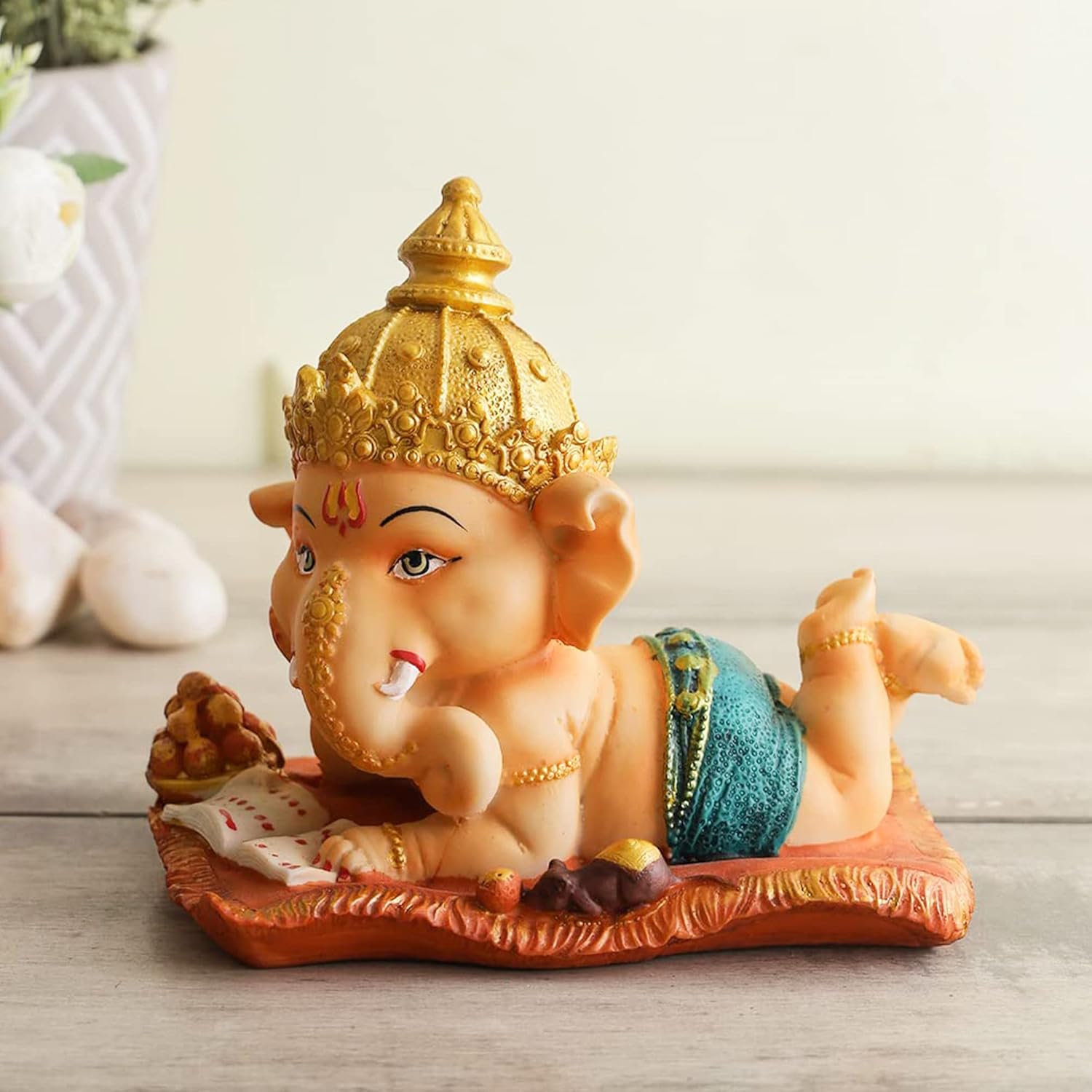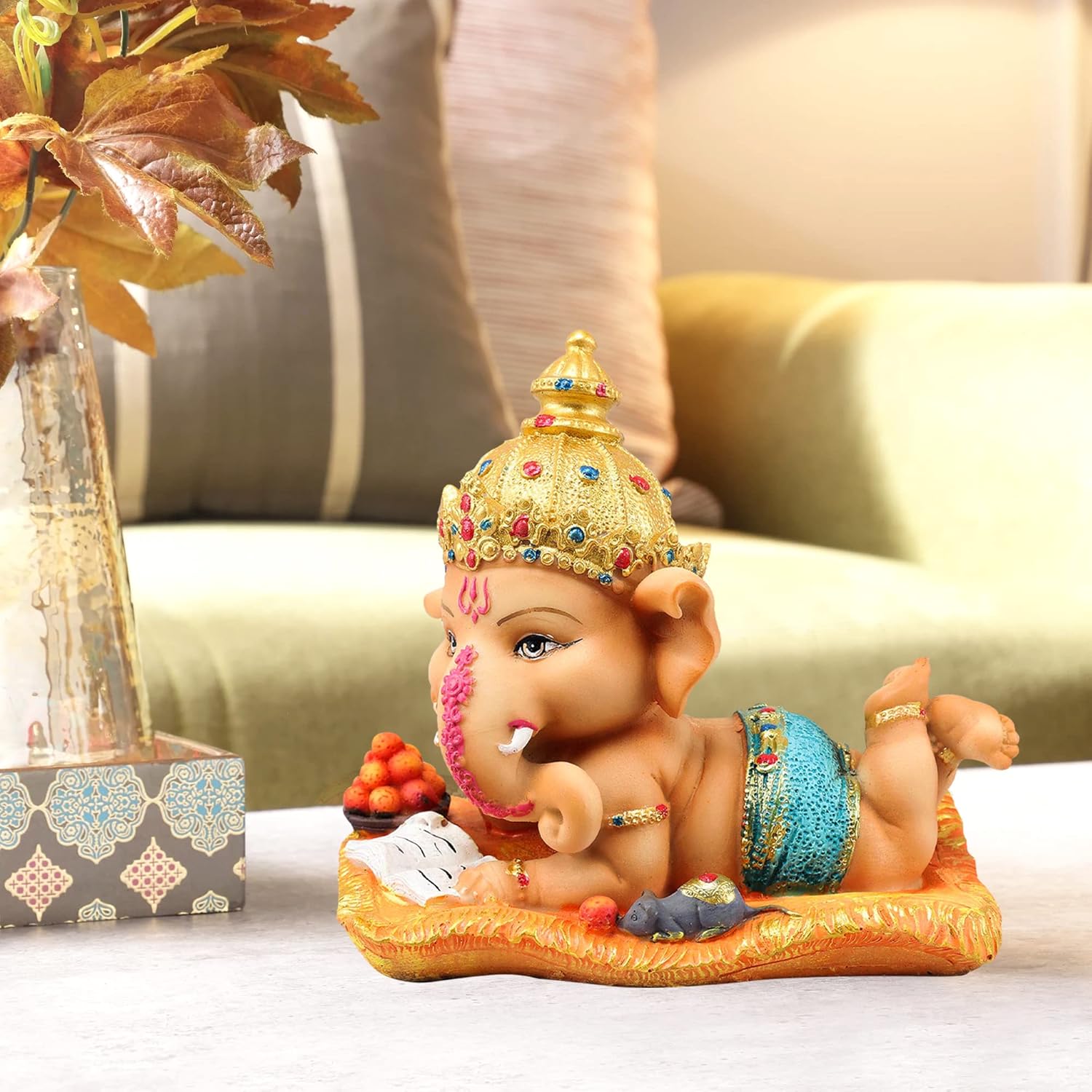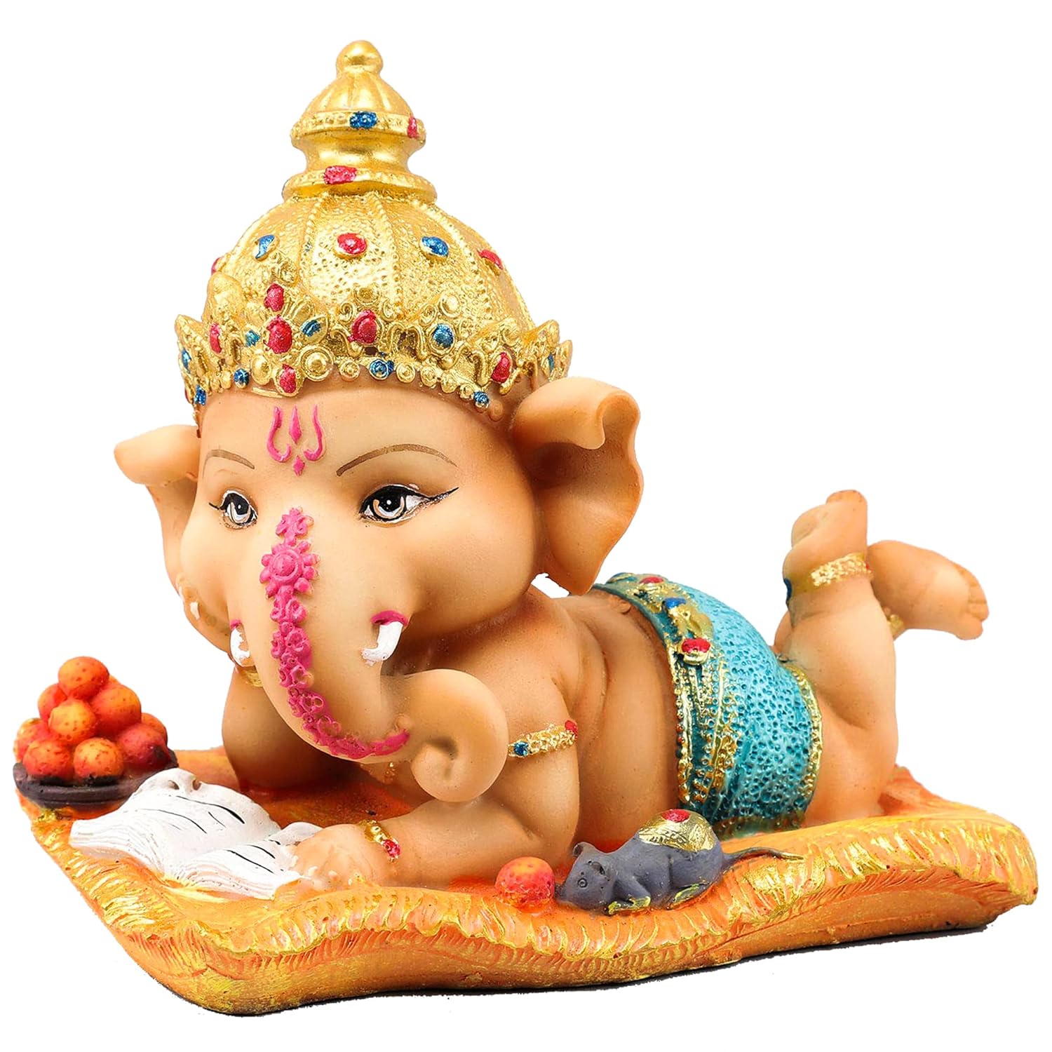 Resin Cute Bal Ganesha Decorative Statue for Home Decor – (Set of 1 Piece, Multicolor)