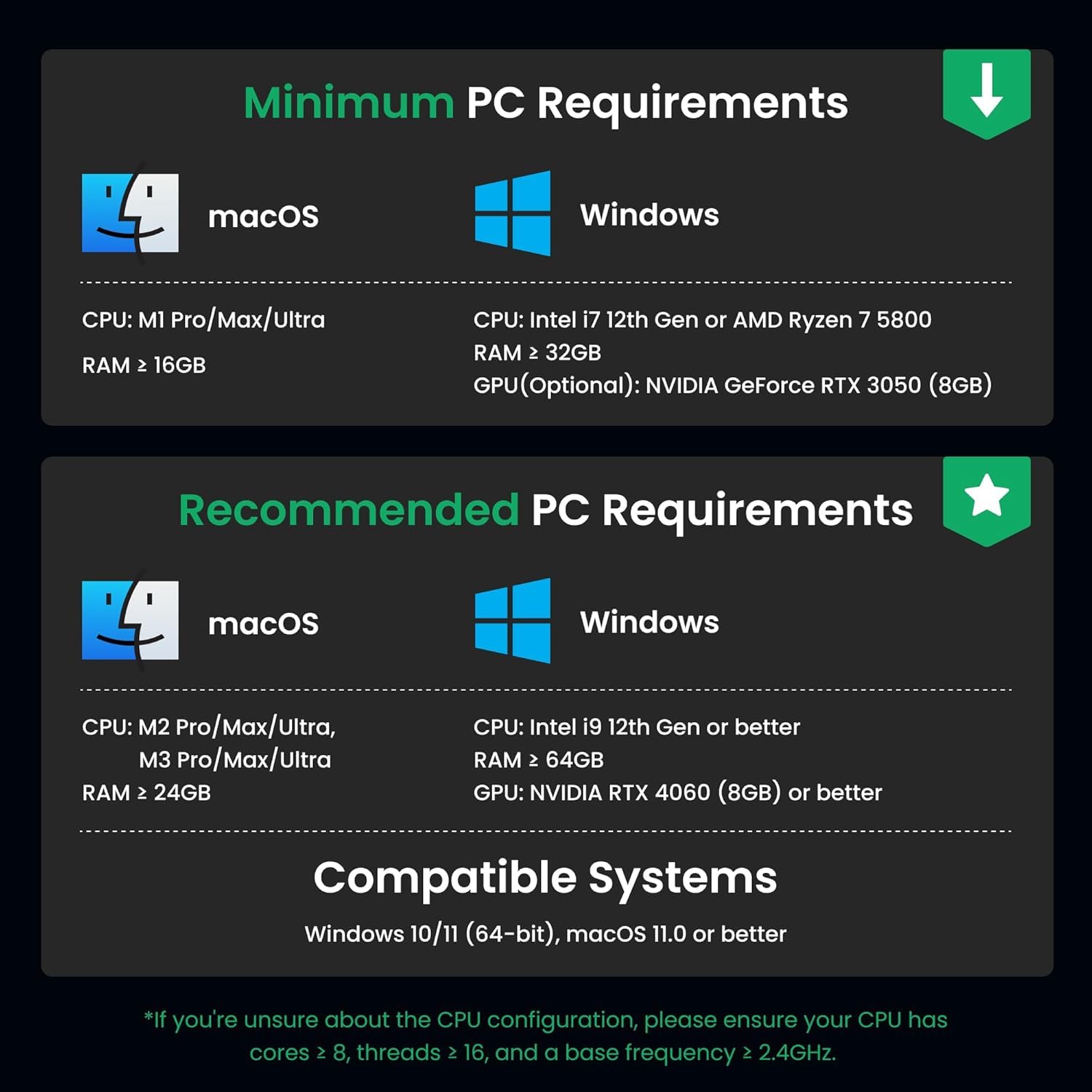 Professional Free Software: The Revo Scan 5 MetroX software offers advanced point cloud scanning, fusion, meshing, editing, import, and export tools. Its numerous file formats(PLY, OBJ, STL, ASC, 3MF, GLTF, FBX) allow easy export for third-party tools like Quicksurface and Geomagic Wrap, streamlining CAD workflows. Note: The software is only compatible with x86_64 architecture.