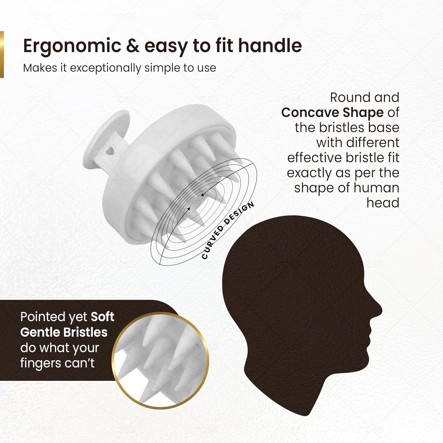 Ross Round Scalp Massager & Shampoo Brush – Soft Bristles for Gentle Scalp Care, Deep Cleaning, Dandruff Prevention, Oil Control, Relaxing Head Massage, and Enhanced Hair Wash Experience (Textured White)