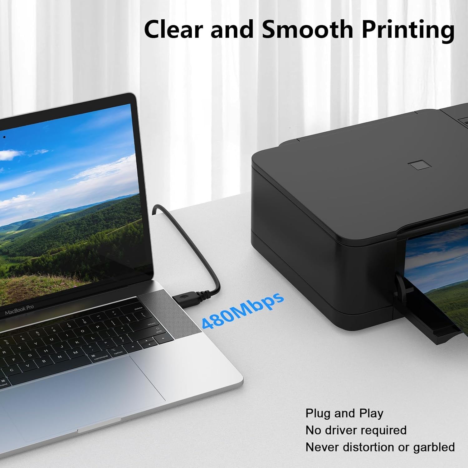 【Ideal Printer Cable】Printer Cable can easily can connect usb type b scanners, printers, all-in-one machines, fax machines and other usb-b devices to your laptop. It can help you solve the problem of file transfer errors and improve office efficiency. Note: This USB Printer Cable is suitable for most printer devices, printing is related to software, please make sure that your device has downloaded the driver, select the corresponding model when printing.