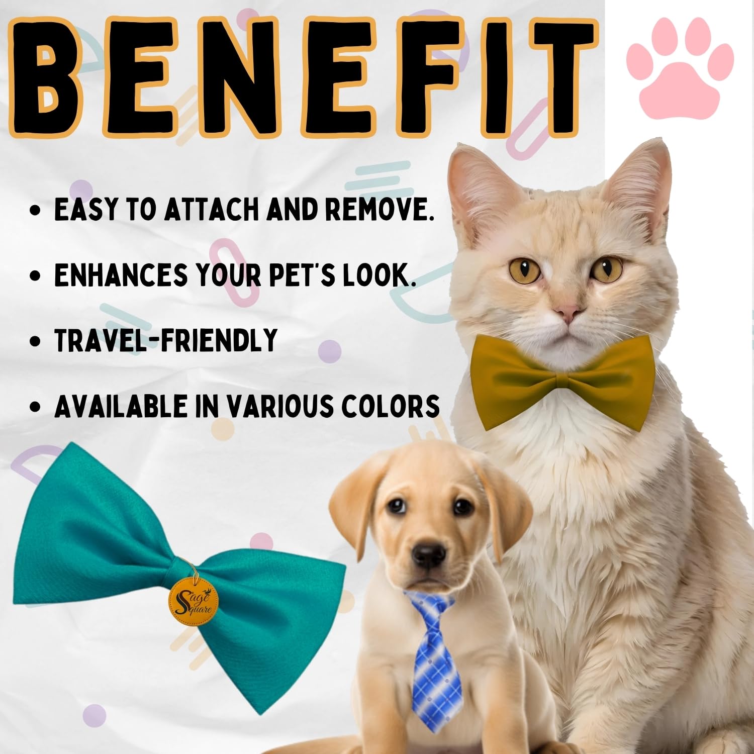 The Sage Square Dog Tie & Bow Tie Combo is suitable for dogs of all sizes. Whether you have a small breed like a Chihuahua or a large breed like a Labrador, these accessories are designed to cater to their unique needs.