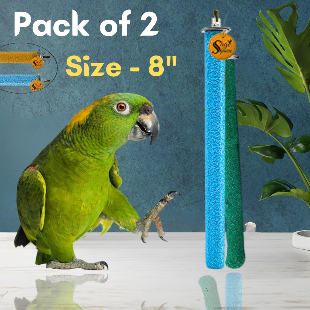 Sage Square Set of 2 Natural Habitat Wooden Sand Perch/Stand/Toy for Birds (Light Weight) (Size – 8″)