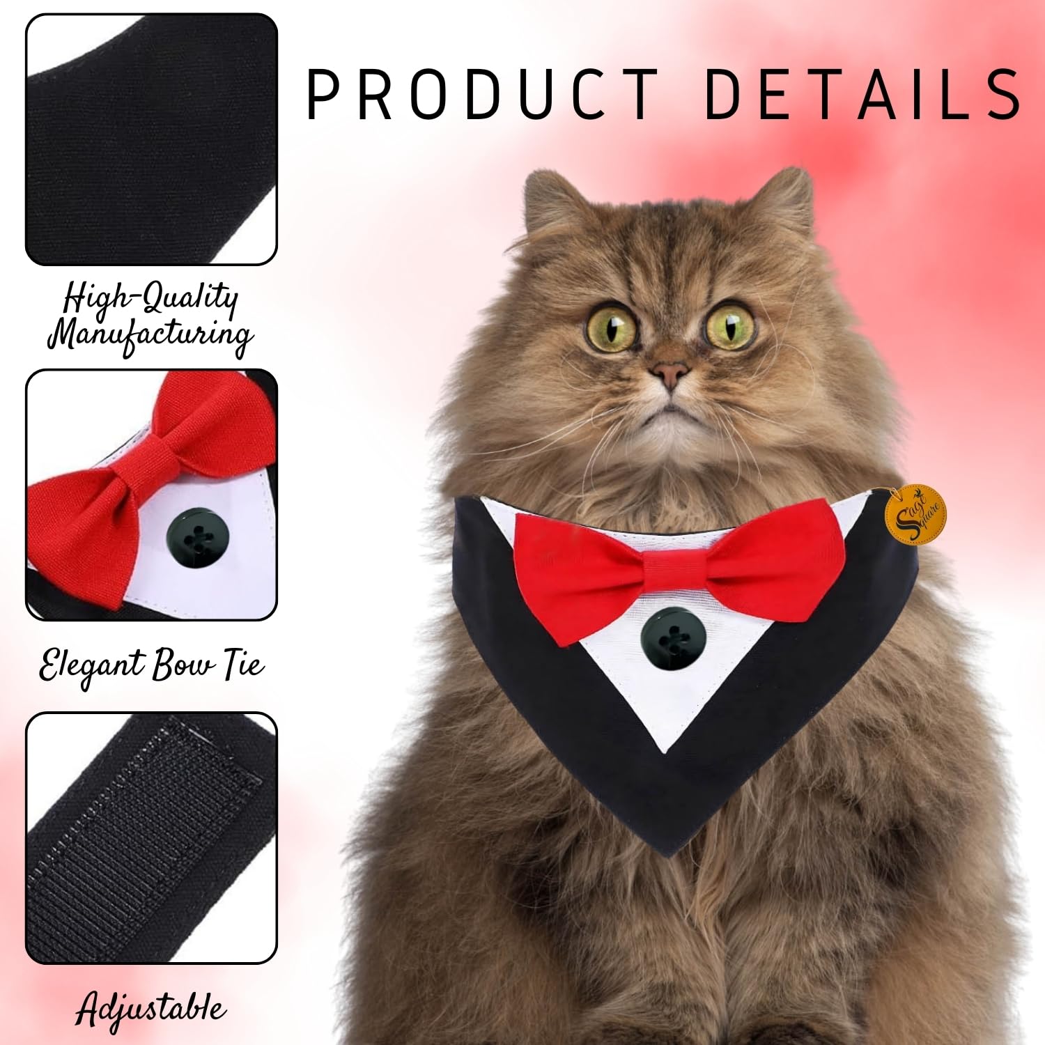 Sage Square Tuxedo Bandana for Dogs & Cats – Trendy Style, Ideal for Birthdays, Weddings, Parties, Luxury Pet Apparel, Comfortable Fit, Easy to Wear, pet Accessory (Black_Red) (Small)