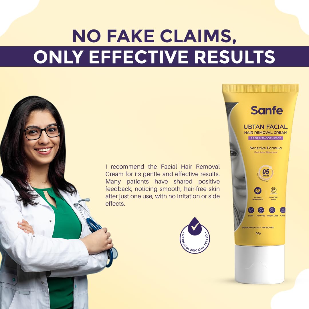 Sanfe ubtan facial hair removal cream | facial hair removal cream for women | safe for sensitive skin | gentle & soothing for delicate face areas | effective face hair removal for women.