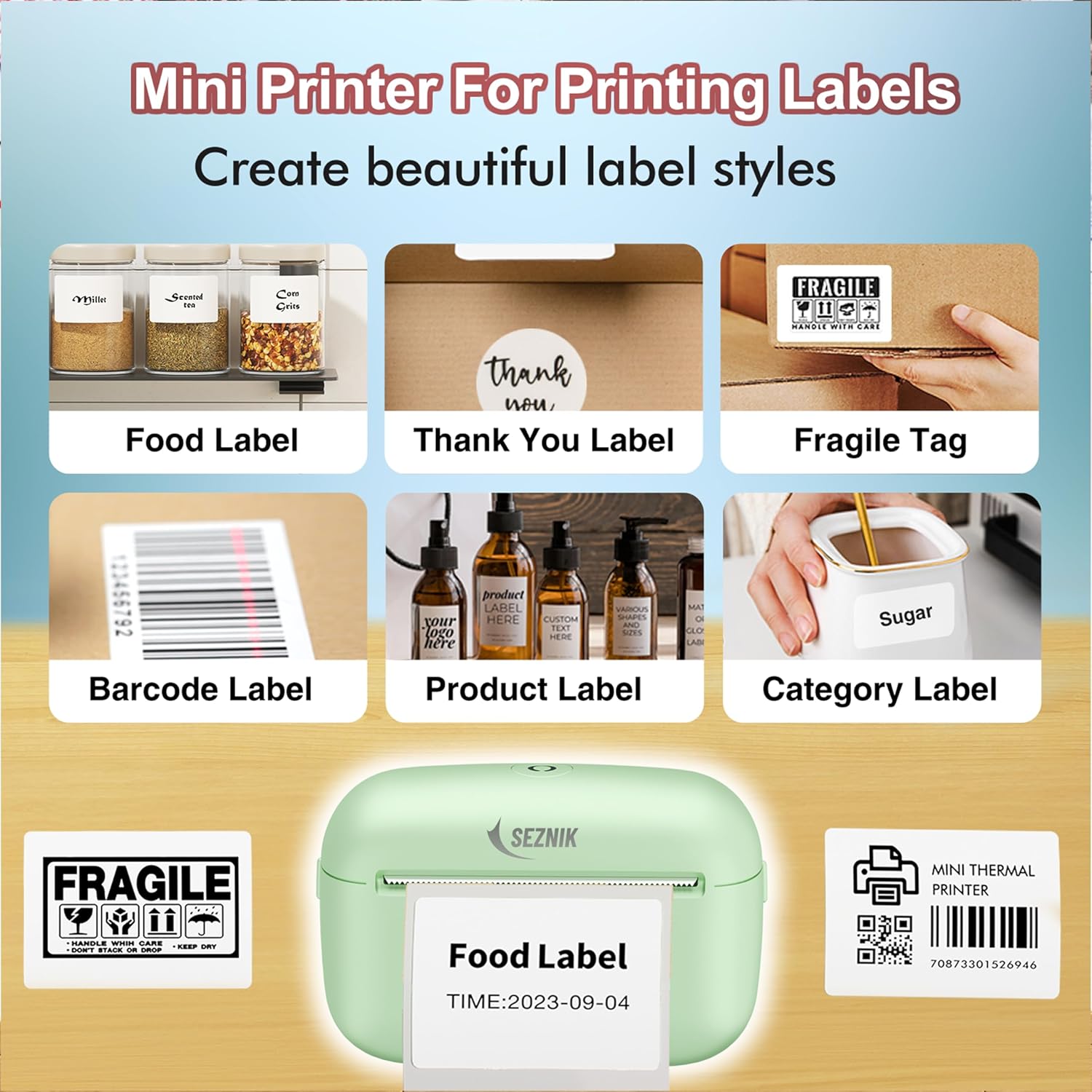 𝟑𝟎𝟒𝐃𝐏𝐈 𝐔𝐋𝐓𝐑𝐀 𝐇𝐃 𝐂𝐋𝐄𝐀𝐑 𝐏𝐑𝐈𝐍𝐓𝐈𝐍𝐆: Seznik Mini Sticker Printer has a cute look and a small size. More importantly, compared with similar mini printer, it has clear printing and high-definition imaging.
