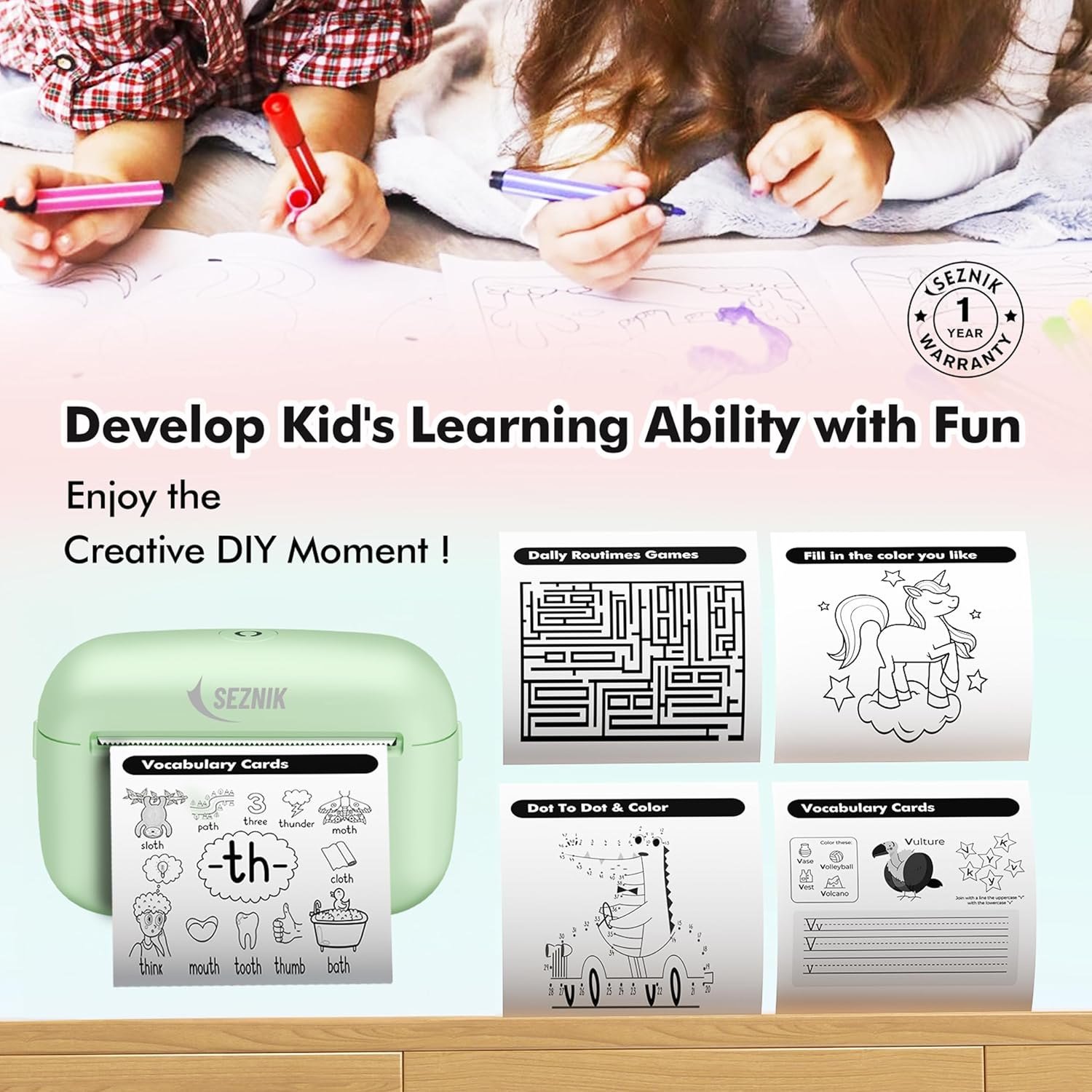 Be the first to review “SEZNIK Mini Printer, Ultra HD Print 304 dpi | Inkless | Portable | Bluetooth Compatible with Android iOS | 1 Year Warranty (Mini-UltraHD-Green)”