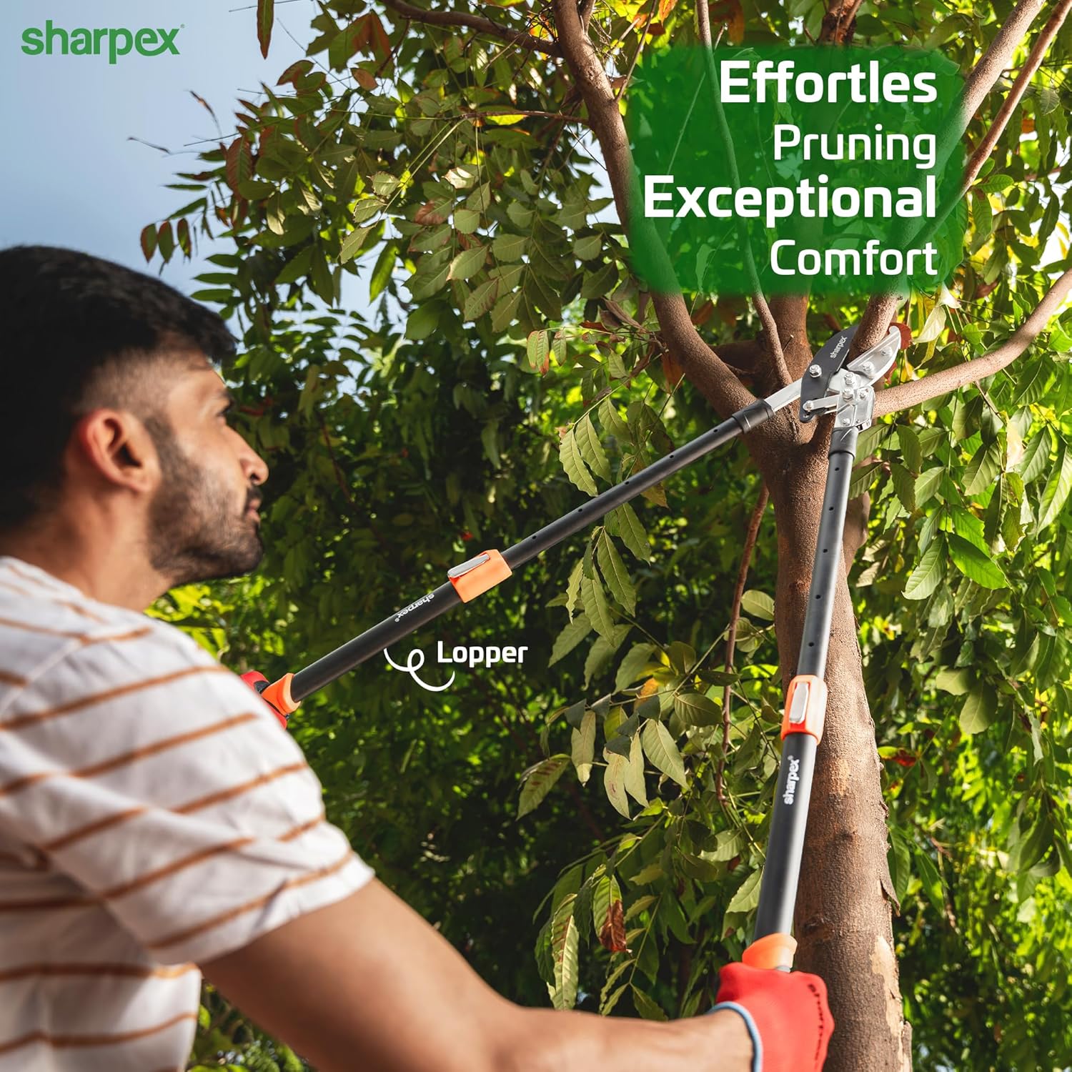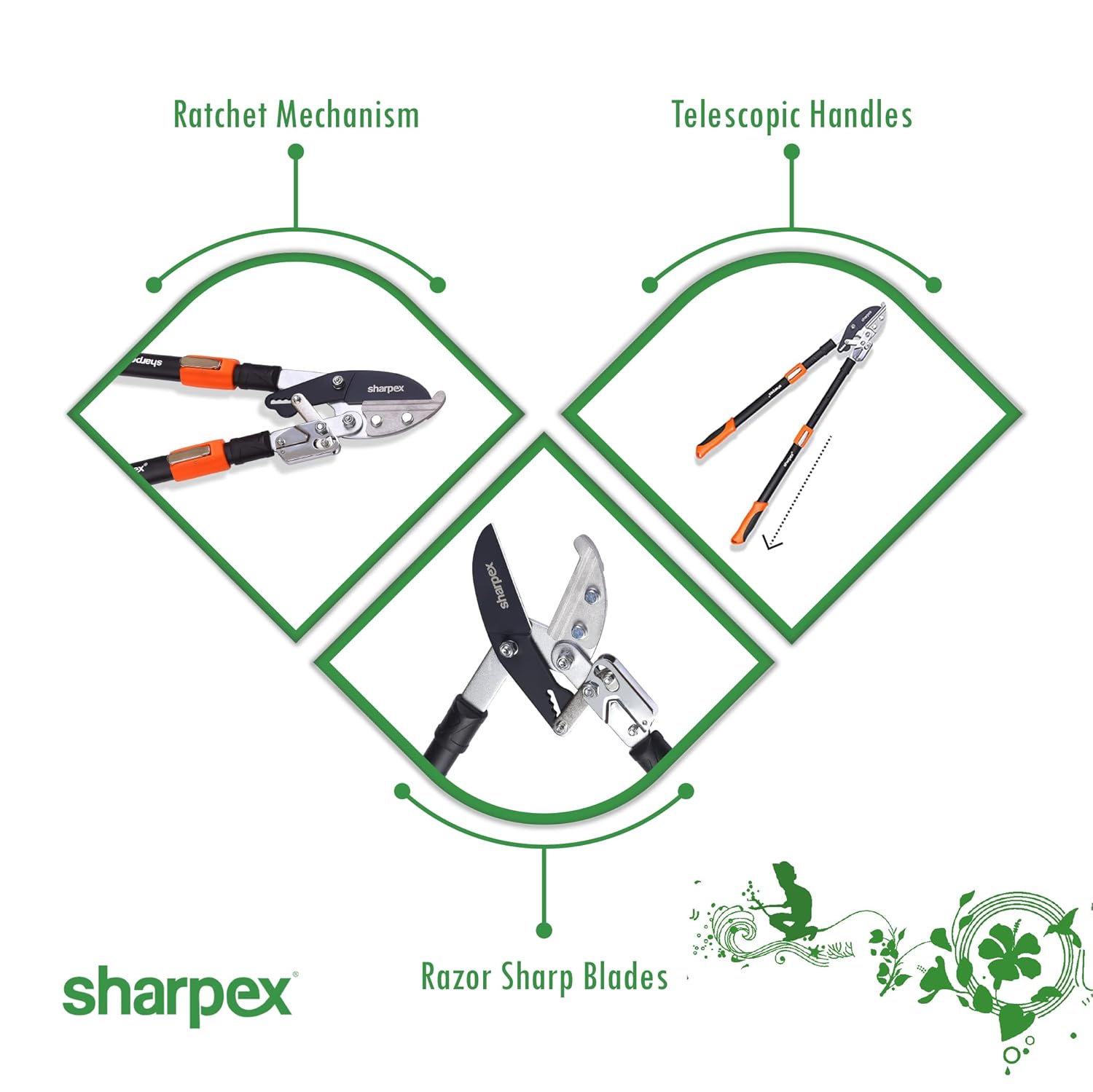 Sharpex Professional Ratchet Anvil Lopper with Compound Action, Sturdy Telescopic Handles with Extra Leverage, Garden Pruning Tree Hedge Branch Cutter Garden Lopper – Pruning Tool (Orange)