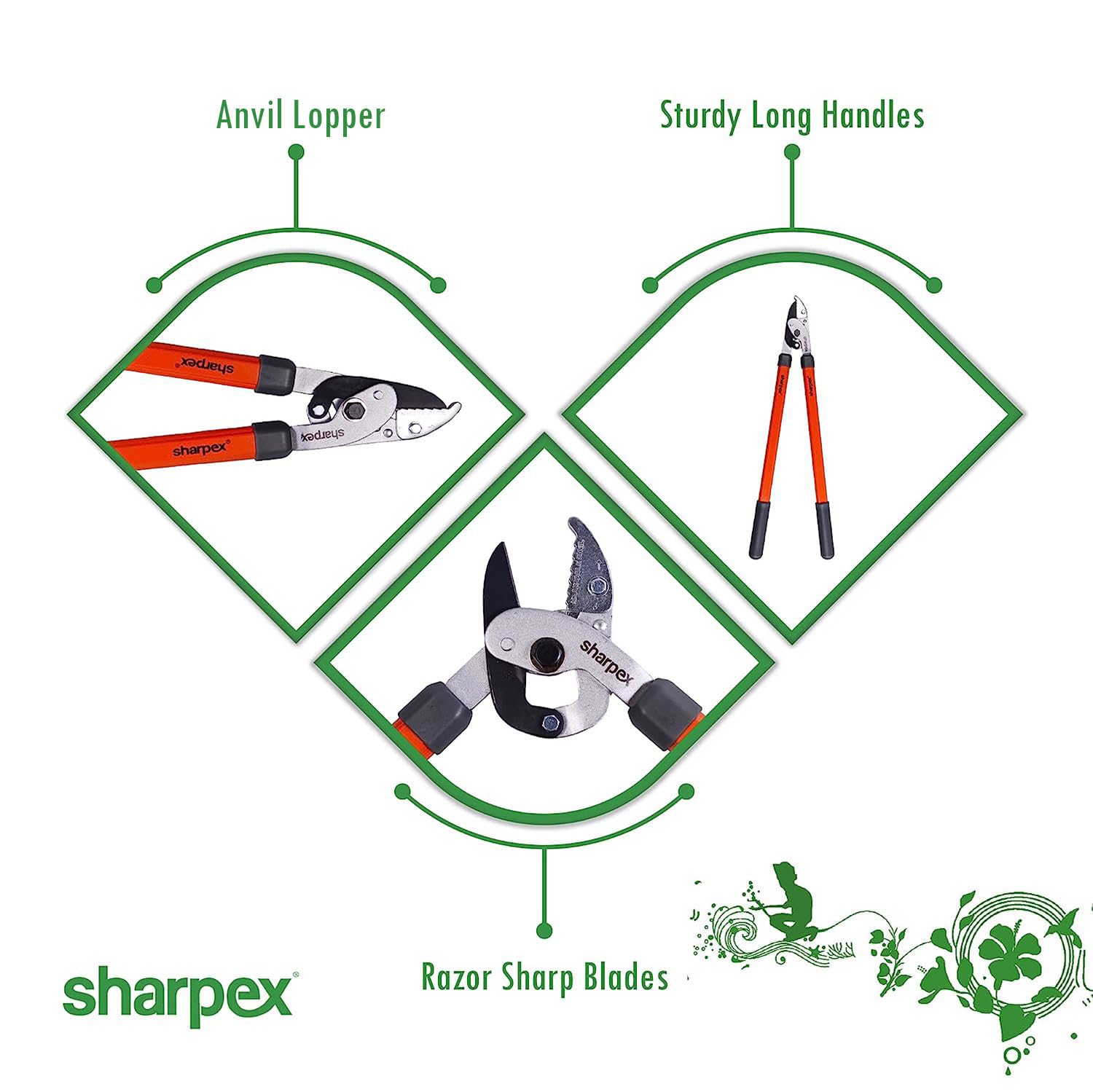 Sharpex Razor Sharp Carbon Steel Blade Anvil Lopper with Sturdy Handle, 2-Inch Cutting Capacity, Professional Garden Lopper – Pruning Tool (Orange)