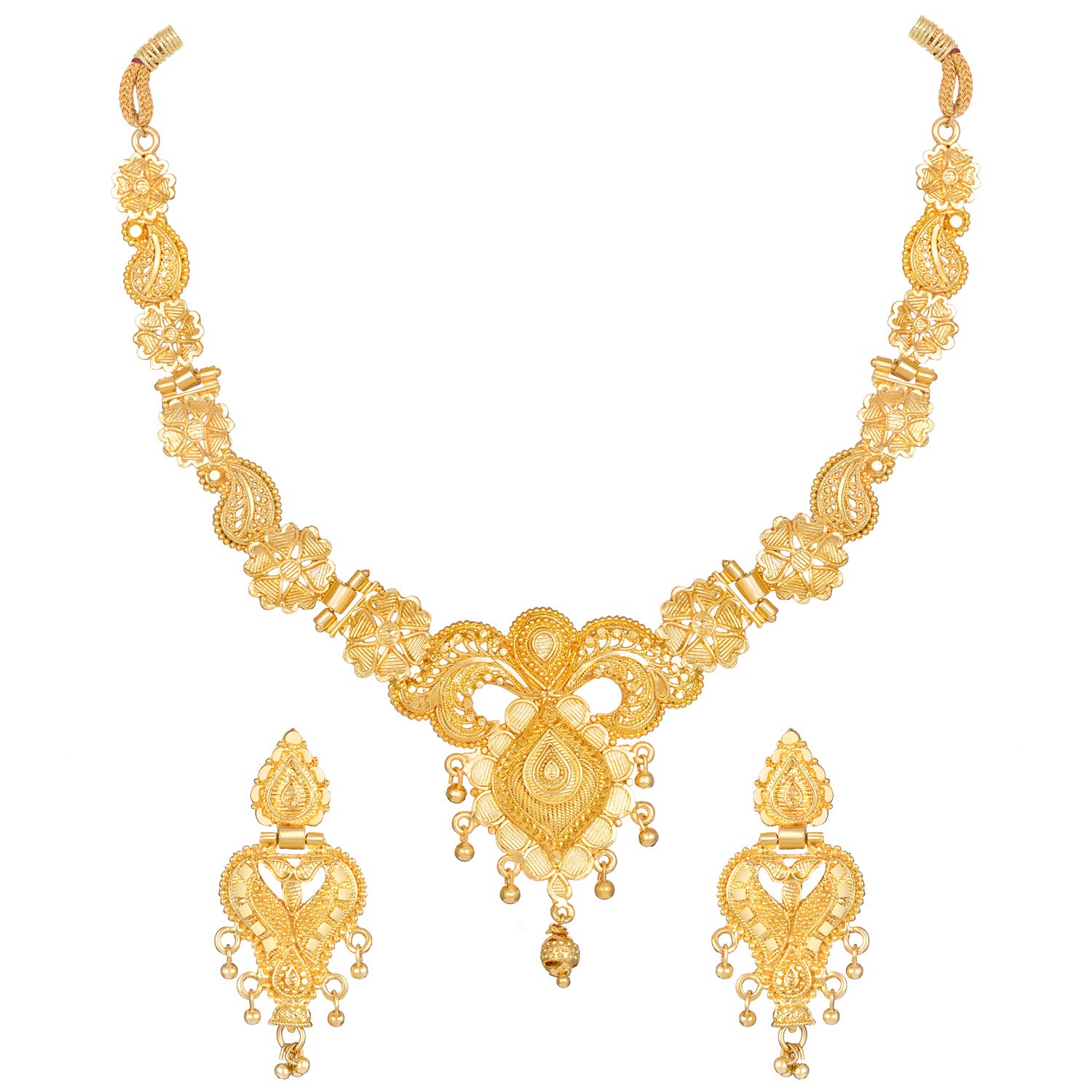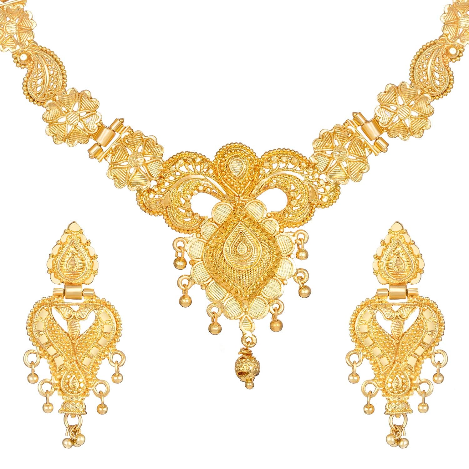 Shining Diva Fashion Latest Choker Design Necklace Set For Women Traditional One Gram Gold Plated Jewellery Set for Women (Golden) (11537s)