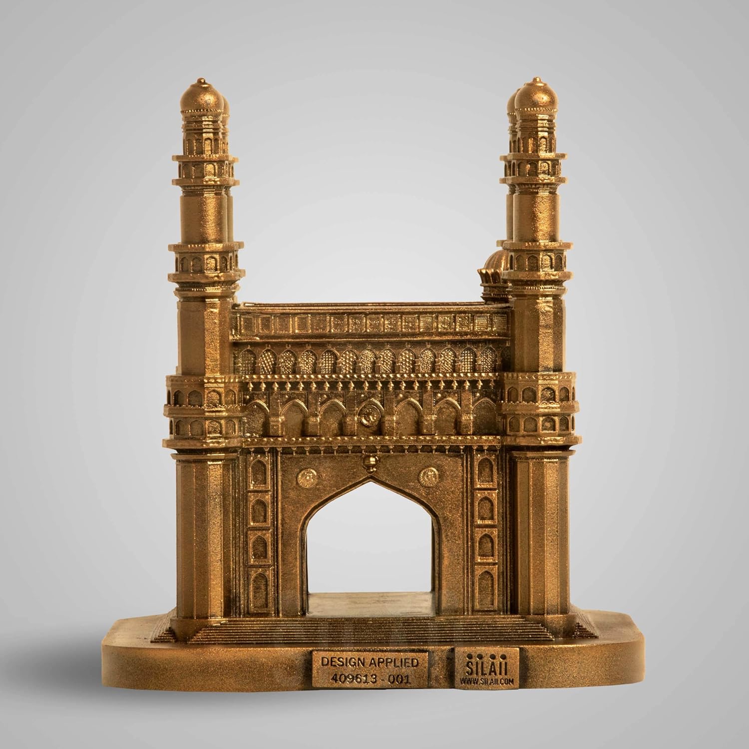 SILAII Resin Charminar Monumental Sculpture | Iconic Hyderabad Landmark | Stunning Home Decor & Souvenir Piece, Gold, 17.7 cm, 7 inches