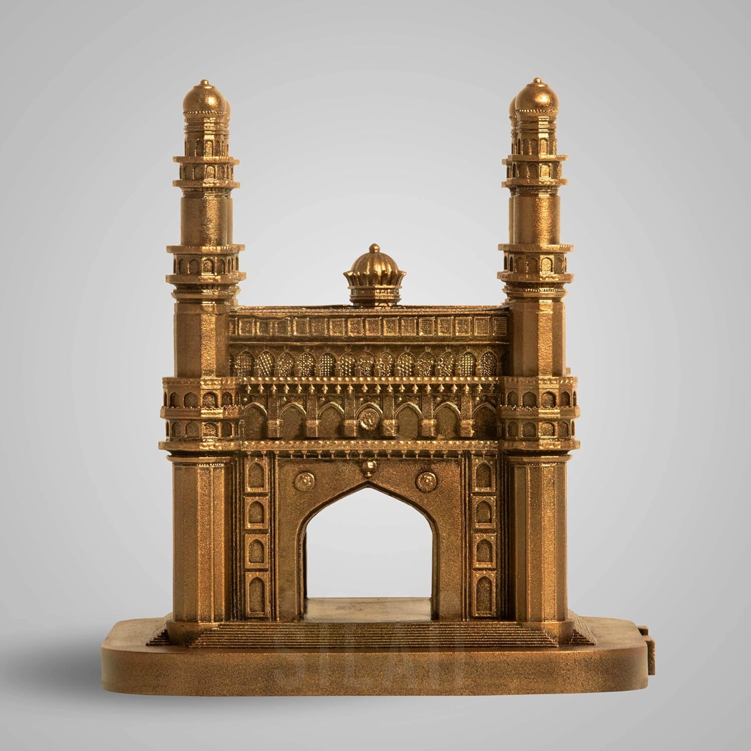Discover the Majestic ‘Charminar’ Sculpture by SILAII: The Charminar, constructed in 1591, stands as a symbol of Hyderabad. It is one of India’s most iconic landmarks, renowned for its stunning architecture and vibrant cultural significance. Our skilled artisans have brought this historical monument to life in detailed form, ensuring every arch and facade reflects the monument’s original grandeur. Each of the four grand arches and the intricate carvings are reproduced with acute attention to detail as a result of extensive research and craftsmanship, ensuring that the sculpture mirrors Charminar’s historic architecture. This Charminar sculpture is perfect for a thoughtful gift for those who appreciate art, history, or the iconic city of Hyderabad.