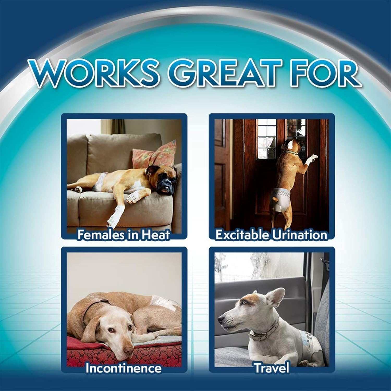 NO MESS – Simple Solution Disposable Dog Diapers have a leak-proof fit that gives your dog freedom of movement without compromising on security. The tail-hole and extra-long wings help them stay put on the wiggliest of dogs.