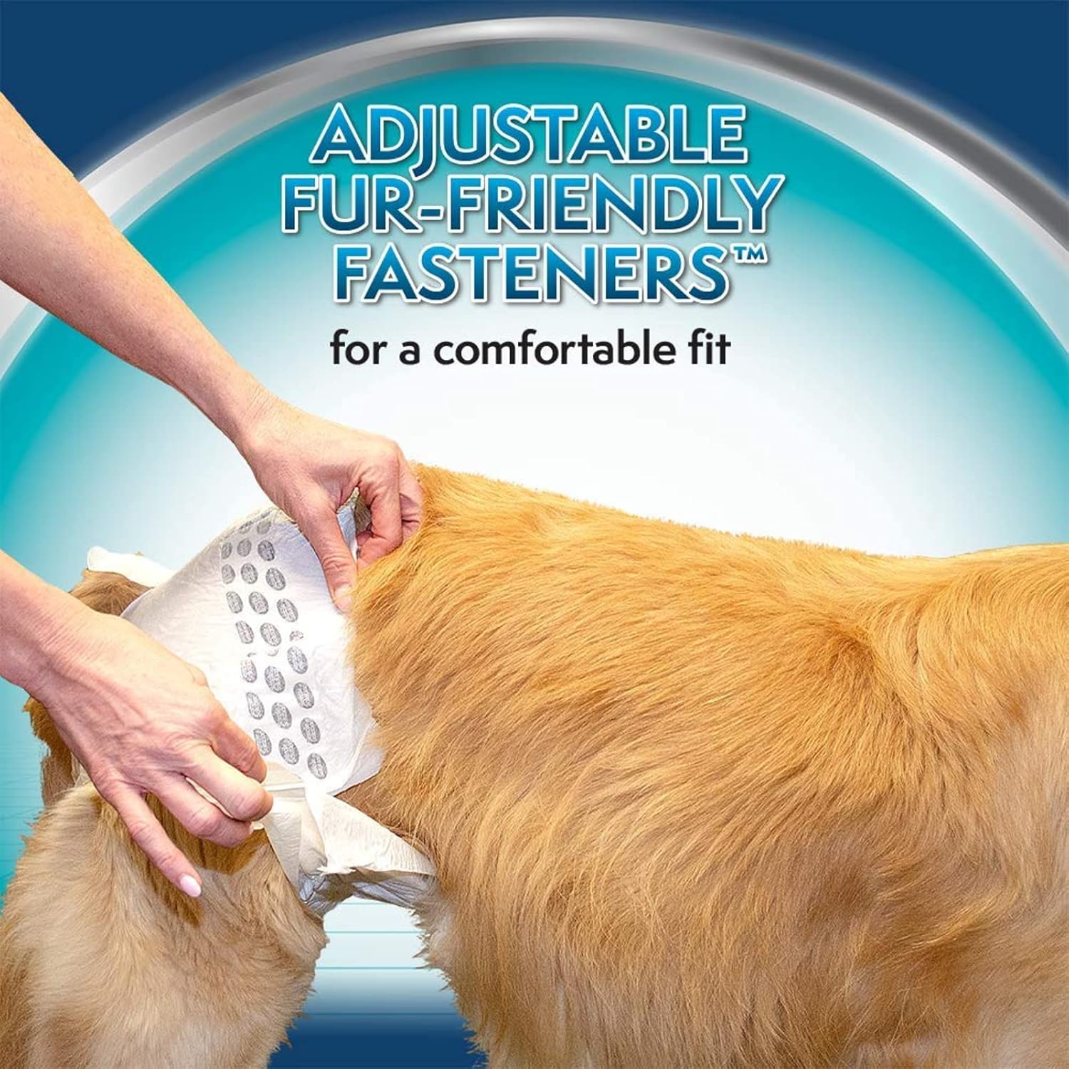 A BETTER FIT – Simple Solution Small Disposable Dog Diapers with new adjustable fit sizes are for female dogs with a Large-XL 46-69cm waist. These female dog diapers feature a stretchable fabric that fits snugly around your pet.