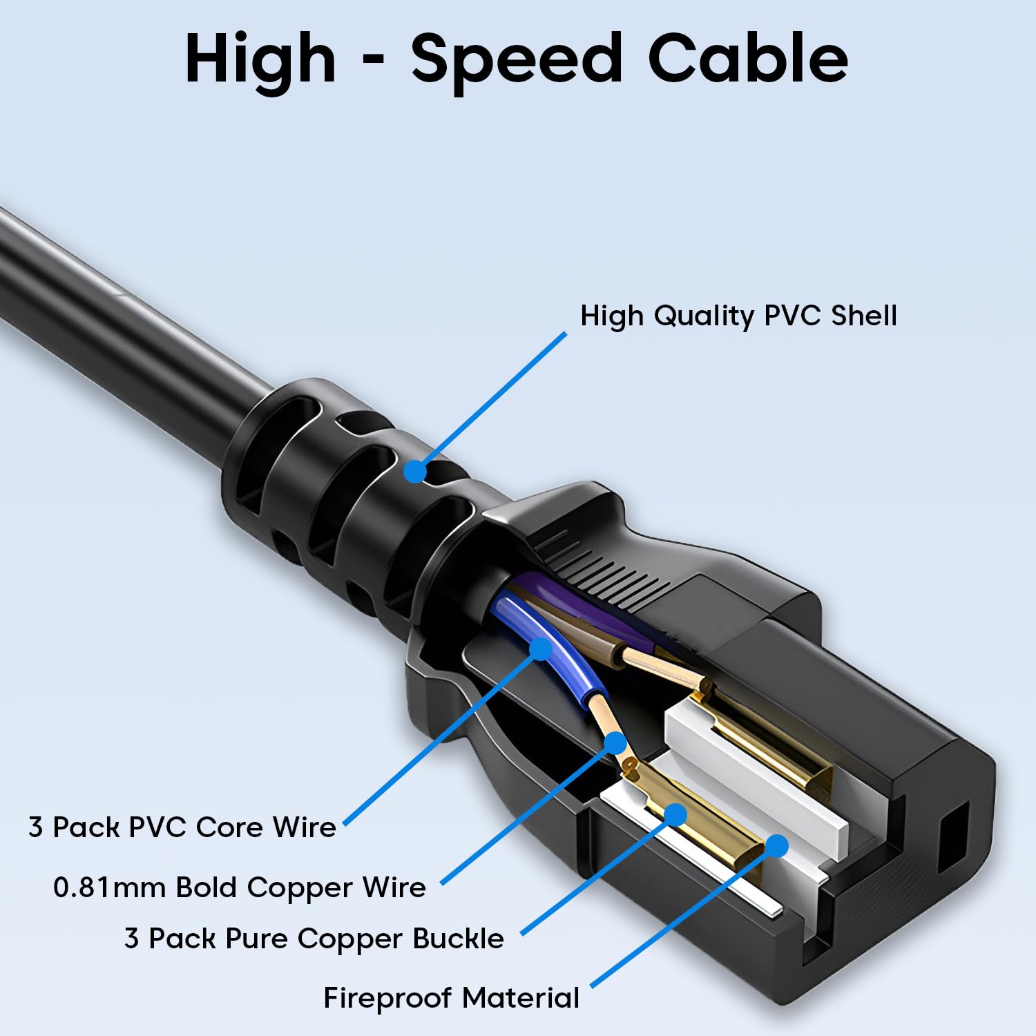 ✅【Safe and Reliable Performance with Built-in Protection】: Engineered with overheat, over-current, over-voltage, and short-circuit protection, this power cable ensures maximum safety during use. The PVC outer shell offers environmental protection, waterproofing, and wear resistance, while the excellent conductivity guarantees a stable and secure connection at all times.