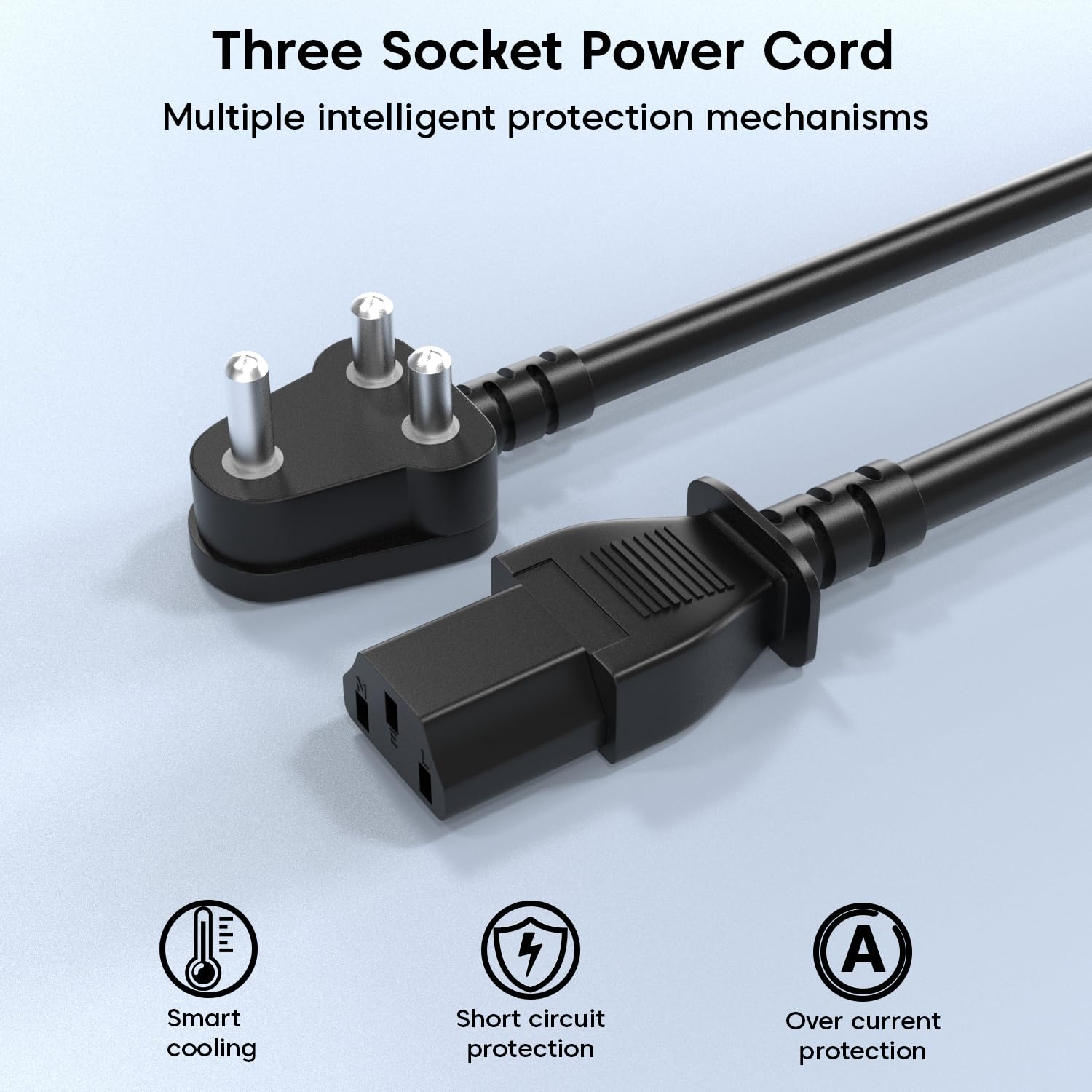 Sounce 1.8M Power Cord Replacement Cable with India Plug and IEC Connector 3 Pin Heavy Duty Power Cable for Desktop PC Monitor Printer TV SMPS Projector Gaming Console and More Durable (Black)