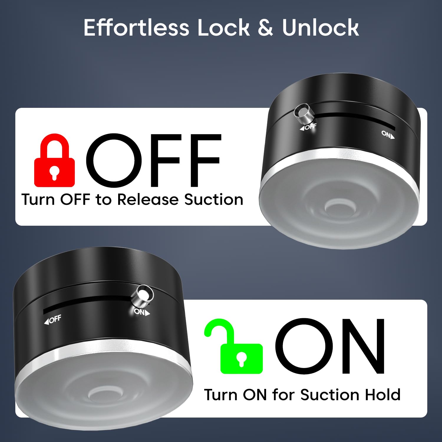 ✅【Advanced Vacuum Suction Technology for Maximum Stability】: This mobile holder uses upgraded vacuum adsorption combined with a strong anti-slip base and N52-grade magnets to create a powerful grip on smooth surfaces like glass, mirrors, dashboards, and desks. It ensures your smartphone stays firmly in place even on rough terrains or during sudden movements.