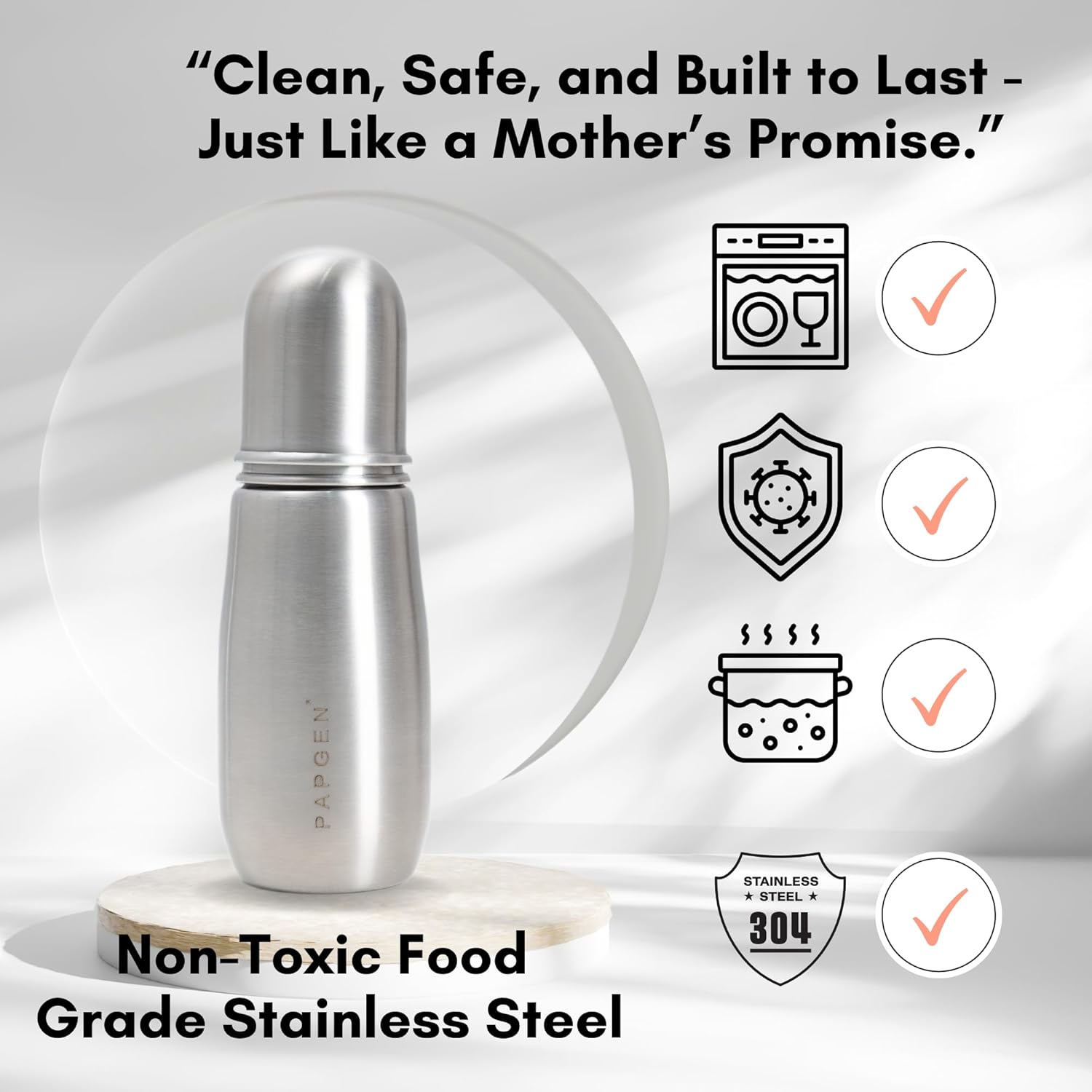 Safe & Hygienic Stainless Steel Baby Feeding Bottles Our stainless steel baby feeding bottles are BPA-free and non-toxic, ensuring your baby’s milk remains pure and uncontaminated. The smooth, polished surface is easy to sterilize and keeps every feed hygienic.