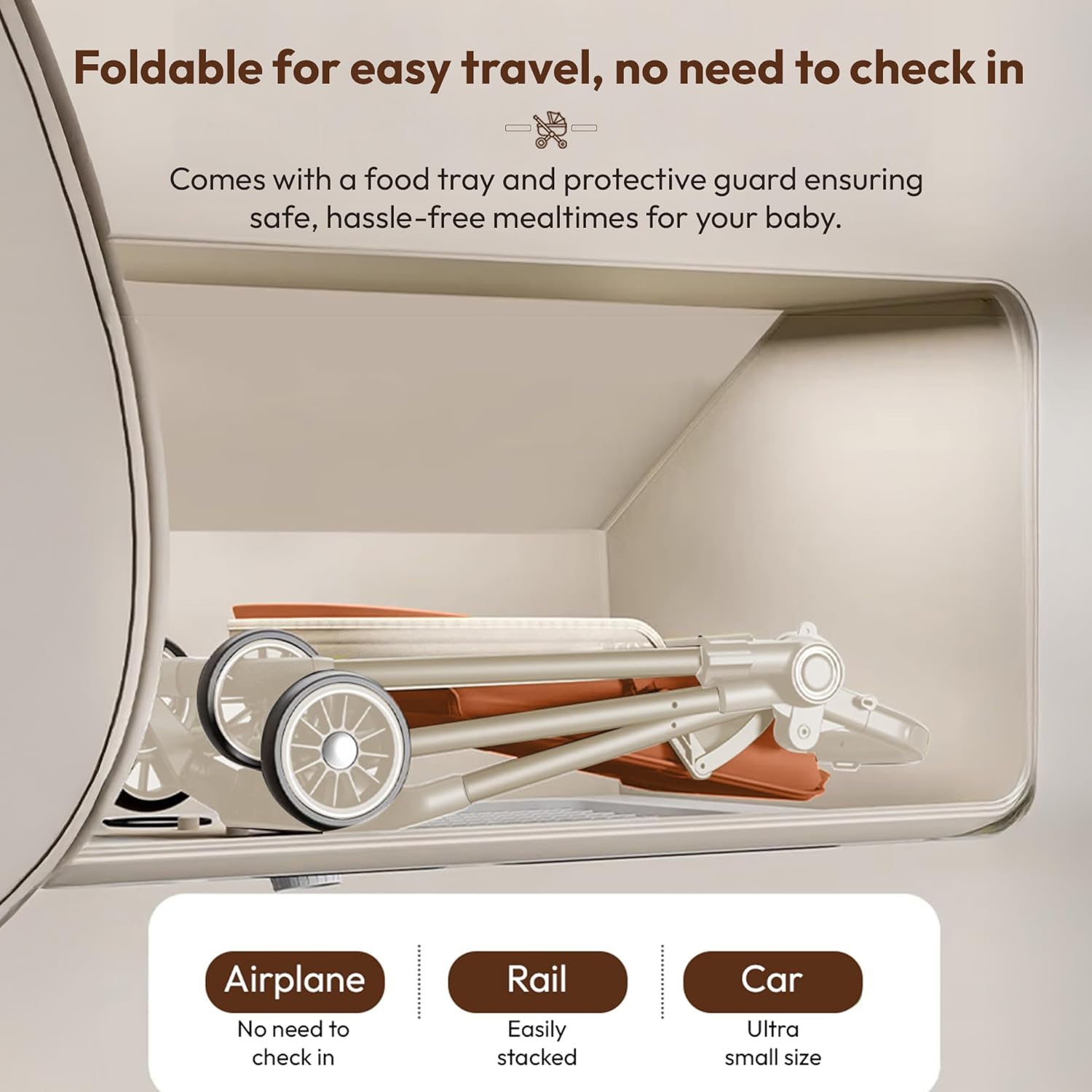 🌞 Adjustable Canopy & Removable Tray: Large adjustable canopy protects your baby from sun and wind. Comes with a removable tray for feeding, toys, or snacks – making every outing comfortable and fun.