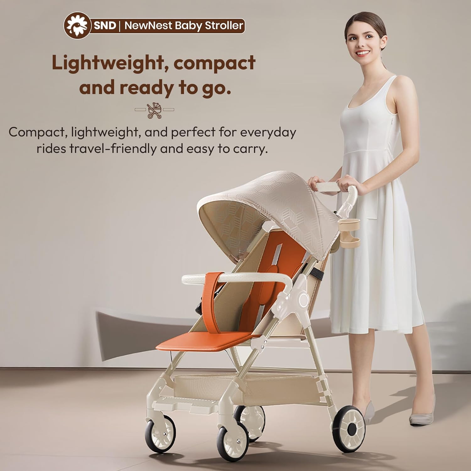 StarAndDaisy Baby Stroller for 0-3 years Newborn & Toddler / Travel Pram for Baby with foldable 360° Swivel Lockable Front Wheels, Multi-Level Recline & Adjustable Footrest , Removable Tray , Safety Harness Belt -Beige