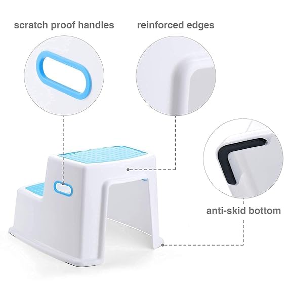 PERFECT FOR GROWING KIDS :- Our dual height design with wide steps help toddlers step their way up to independence as they transition from toilet potty training to washing hands and brushing teeth at the sink, to finally reaching countertops and cabinets in your home and kitchen. The stool feet perform best on clean, dry, oil-free floors.
