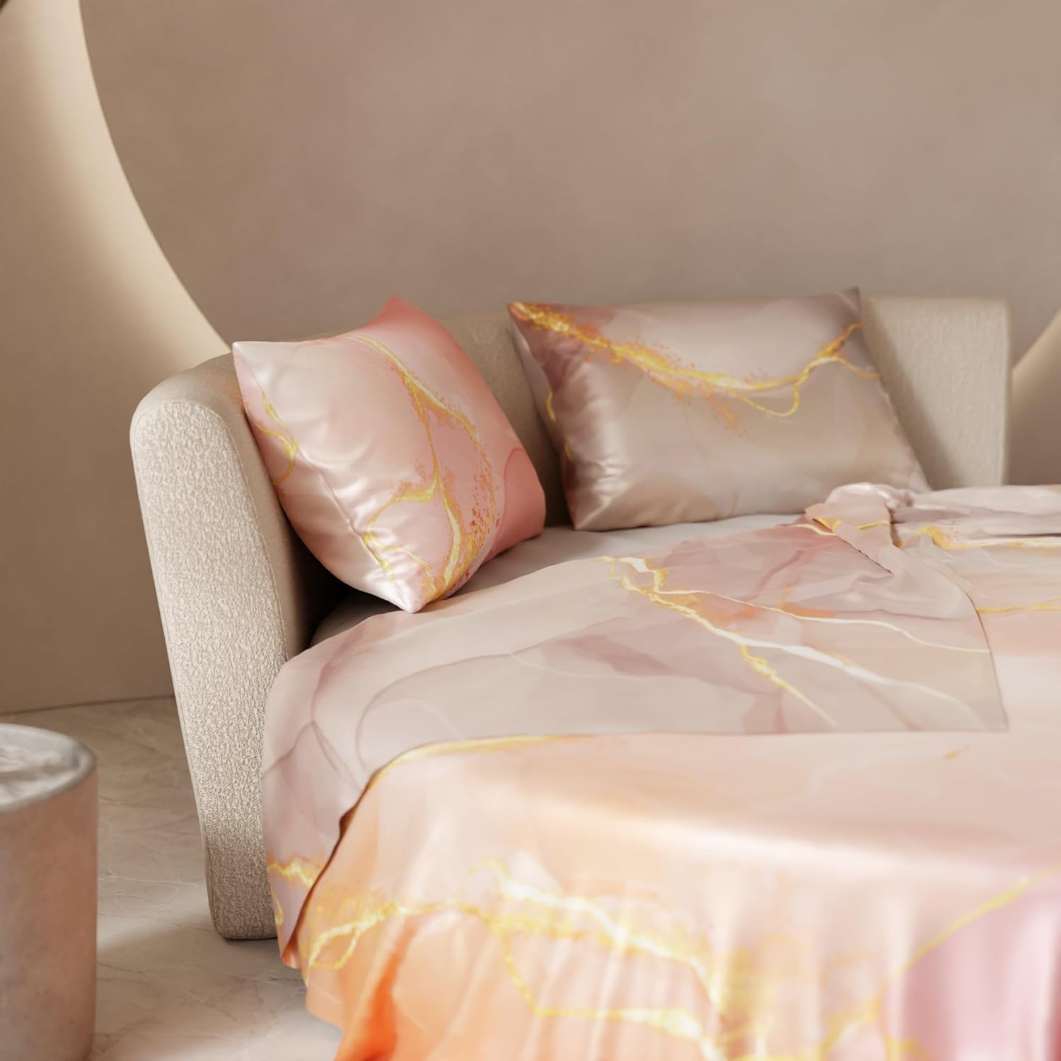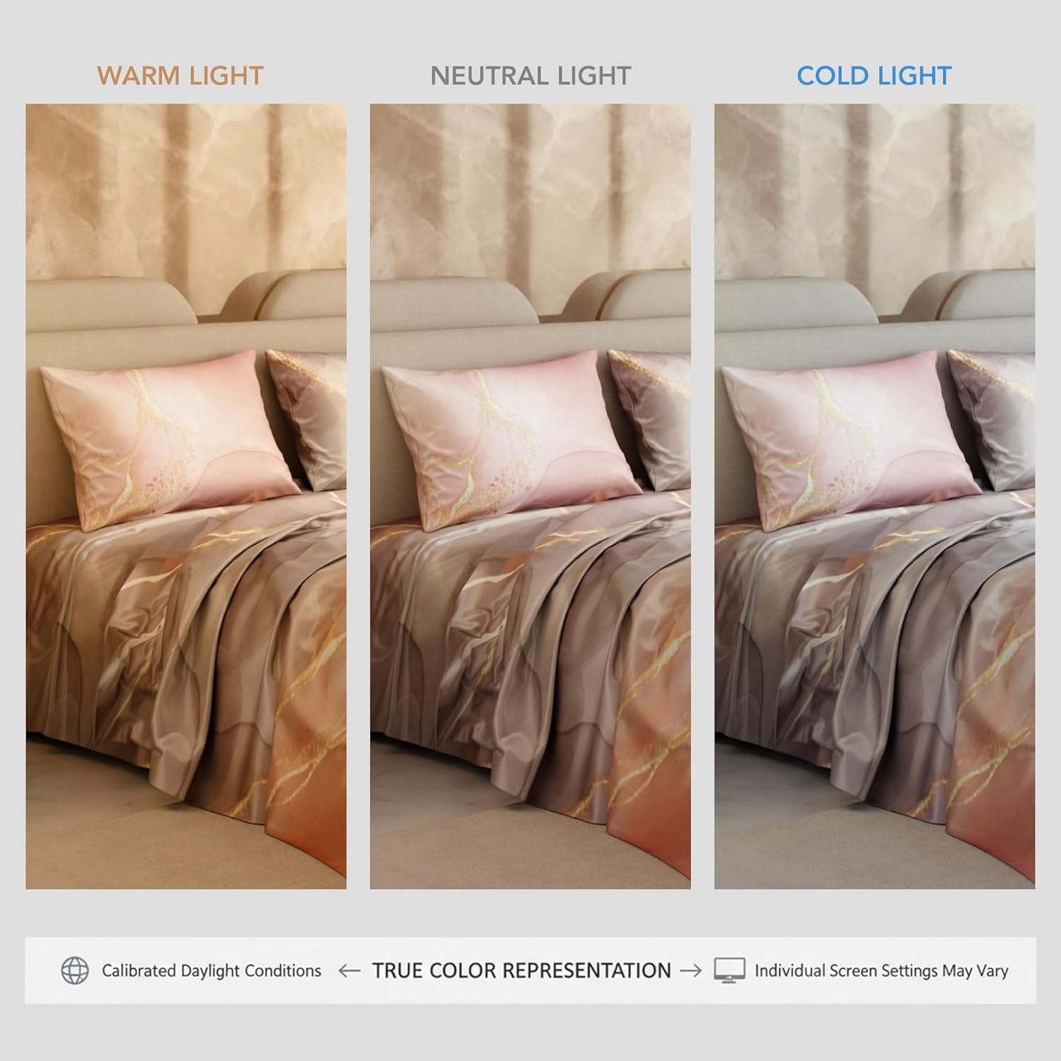 Timeless Elegance: The delicate combination of blush, soft grey, and warm peach brings romantic calm to your space. This bedsheet for king size bed is designed for those who love refined elegance with a gentle, modern twist.
