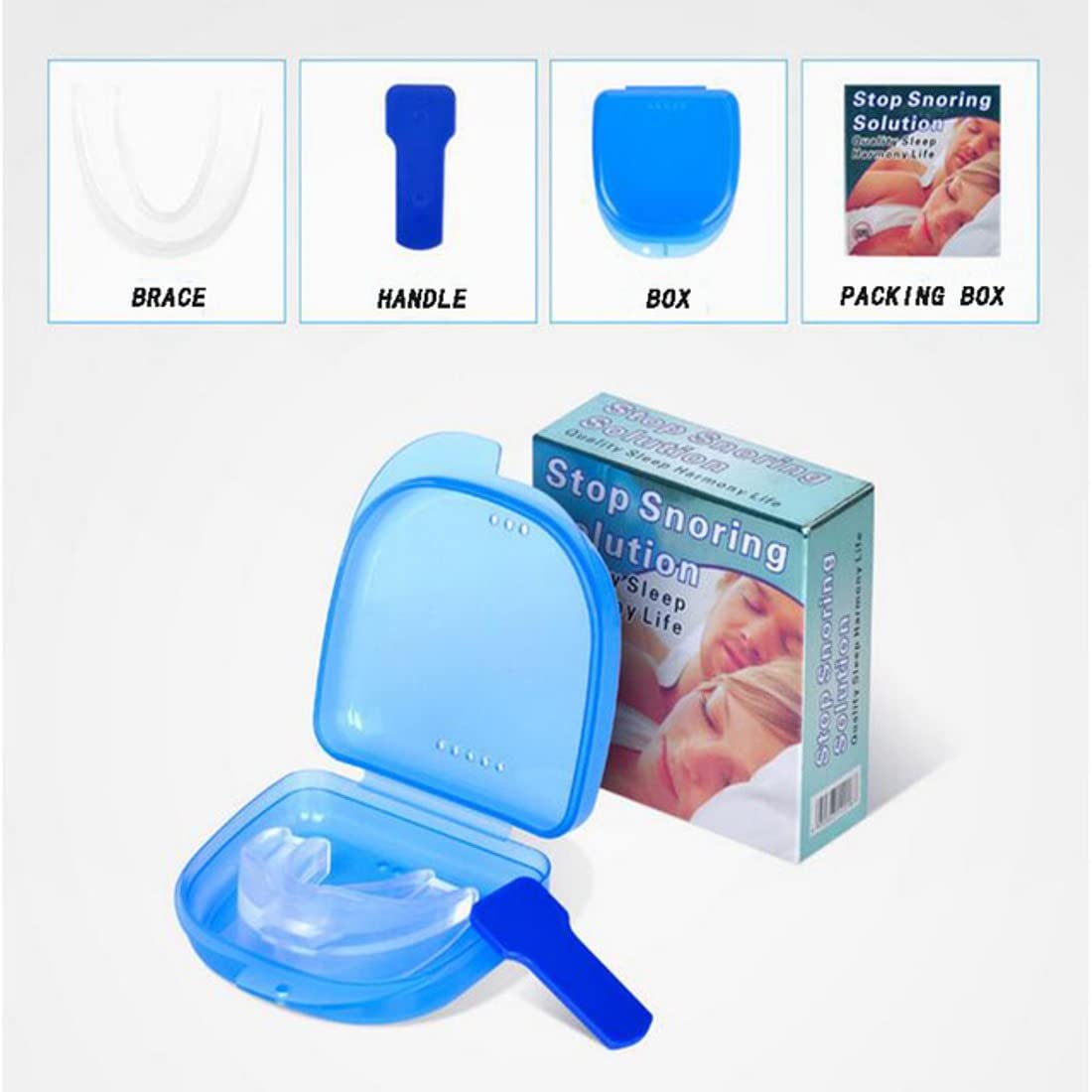 Includes: Mouth Guard, Handle, Storage Case & Instruction Manual. Made from soft medical grade silicone making this one of the most comfortable anti snore devise in the market.