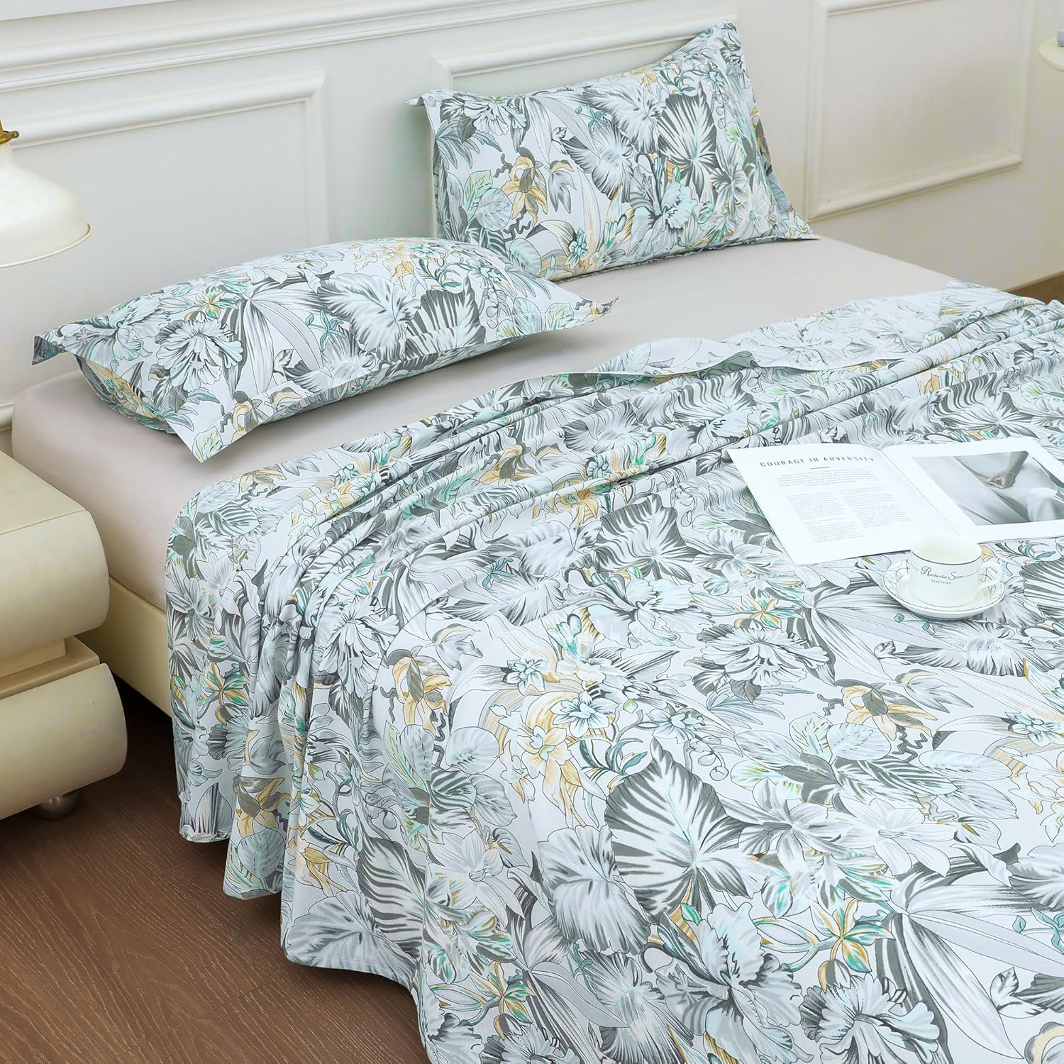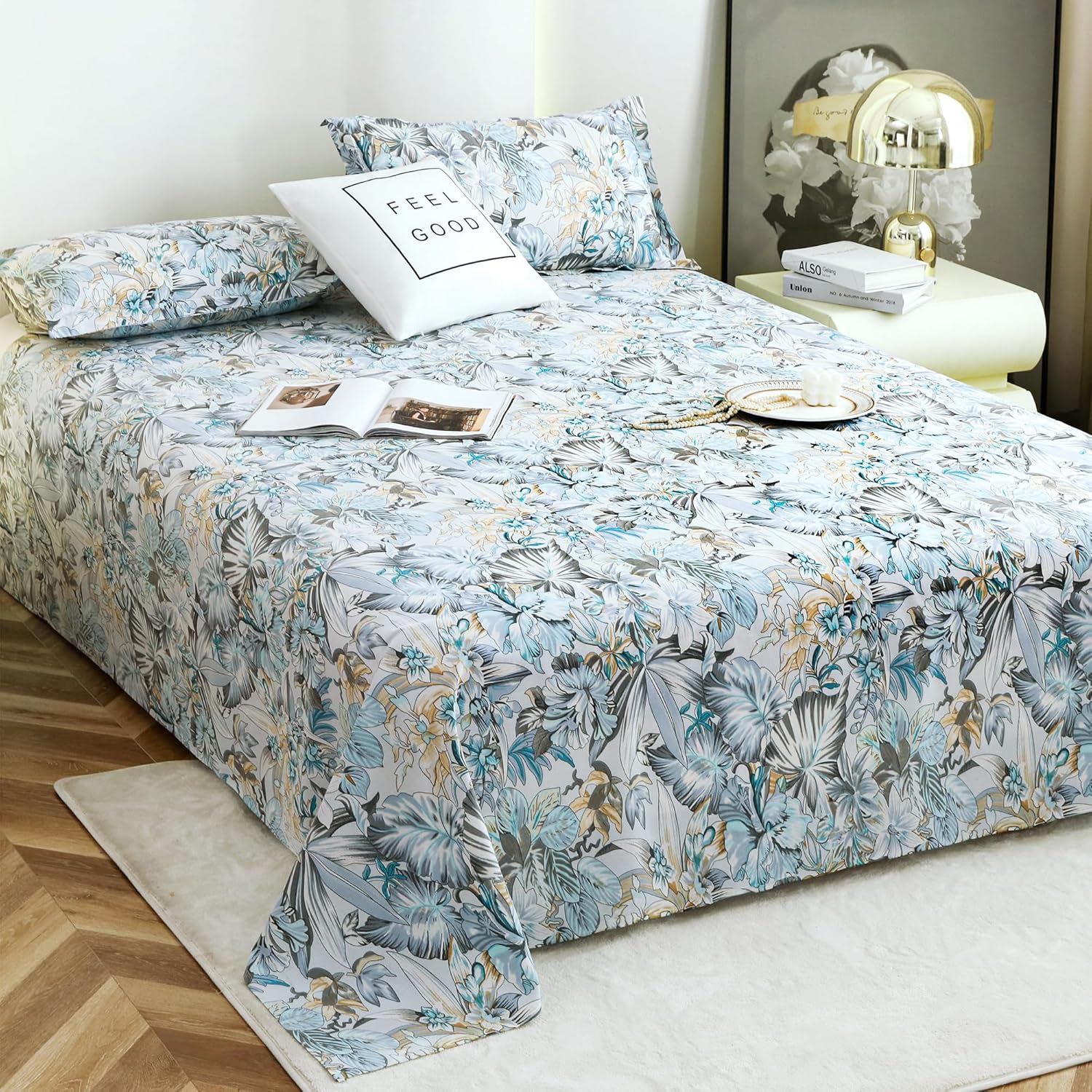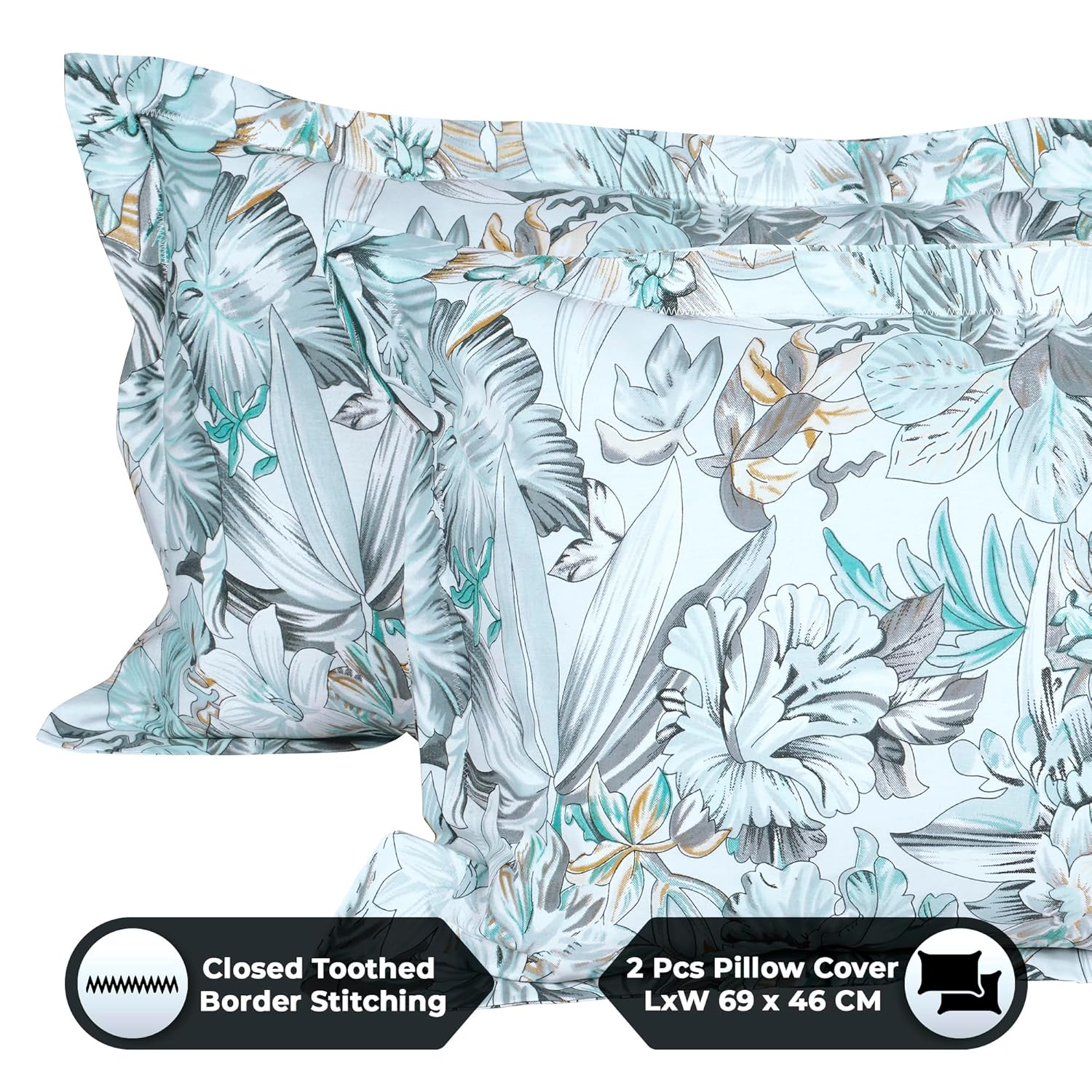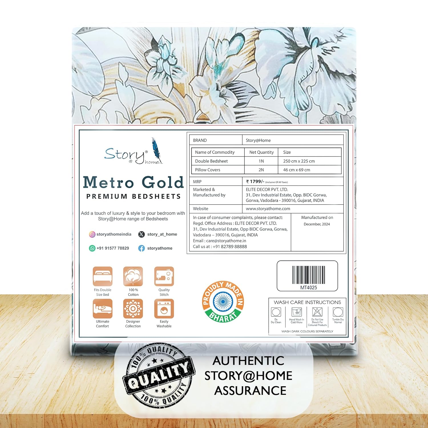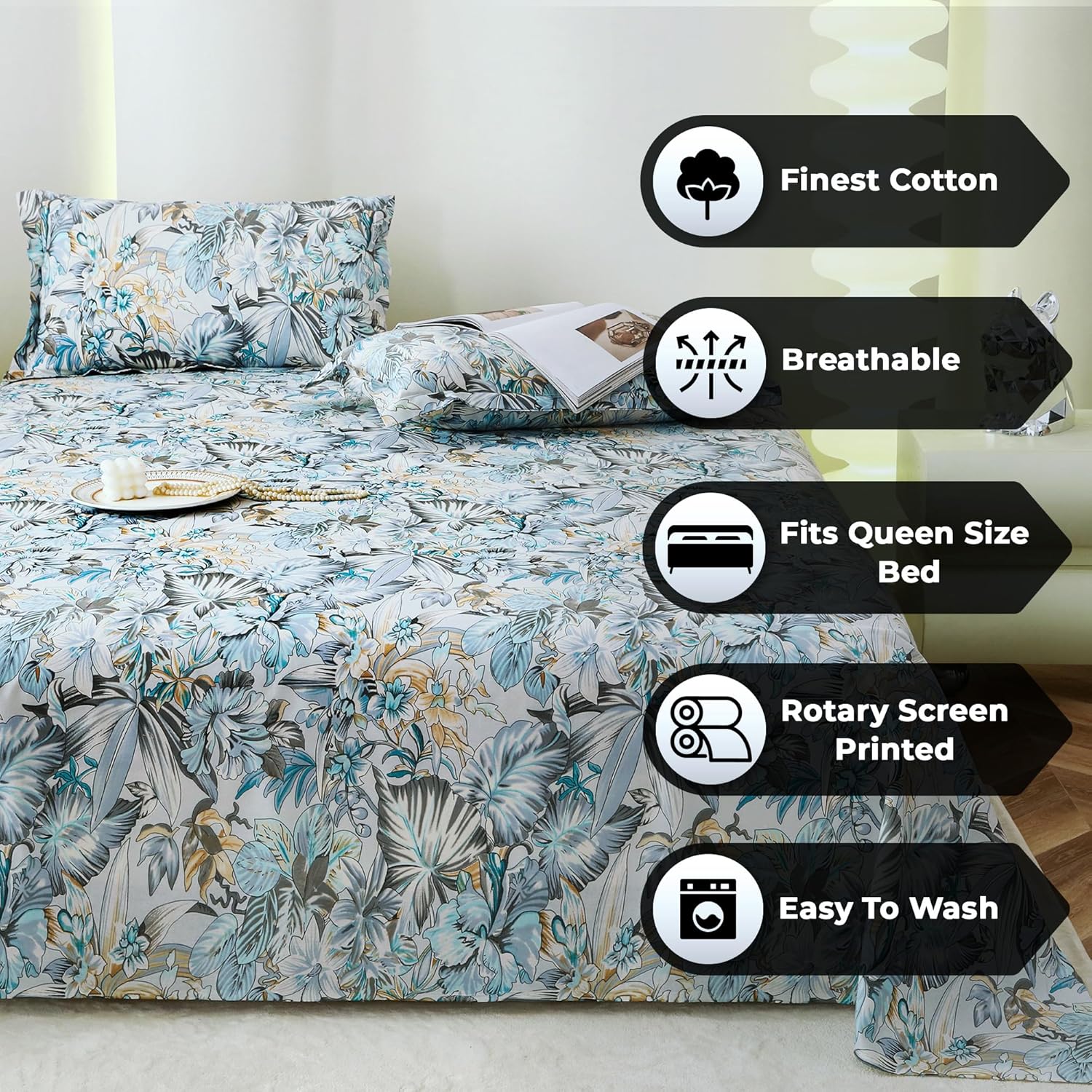 Story@Home Bedsheet for Double Bed Cotton 190 TC with 2 Pillow Covers, Grey & Blue, Floral, 225 cm X 250 cm | Perfect for Home Decor