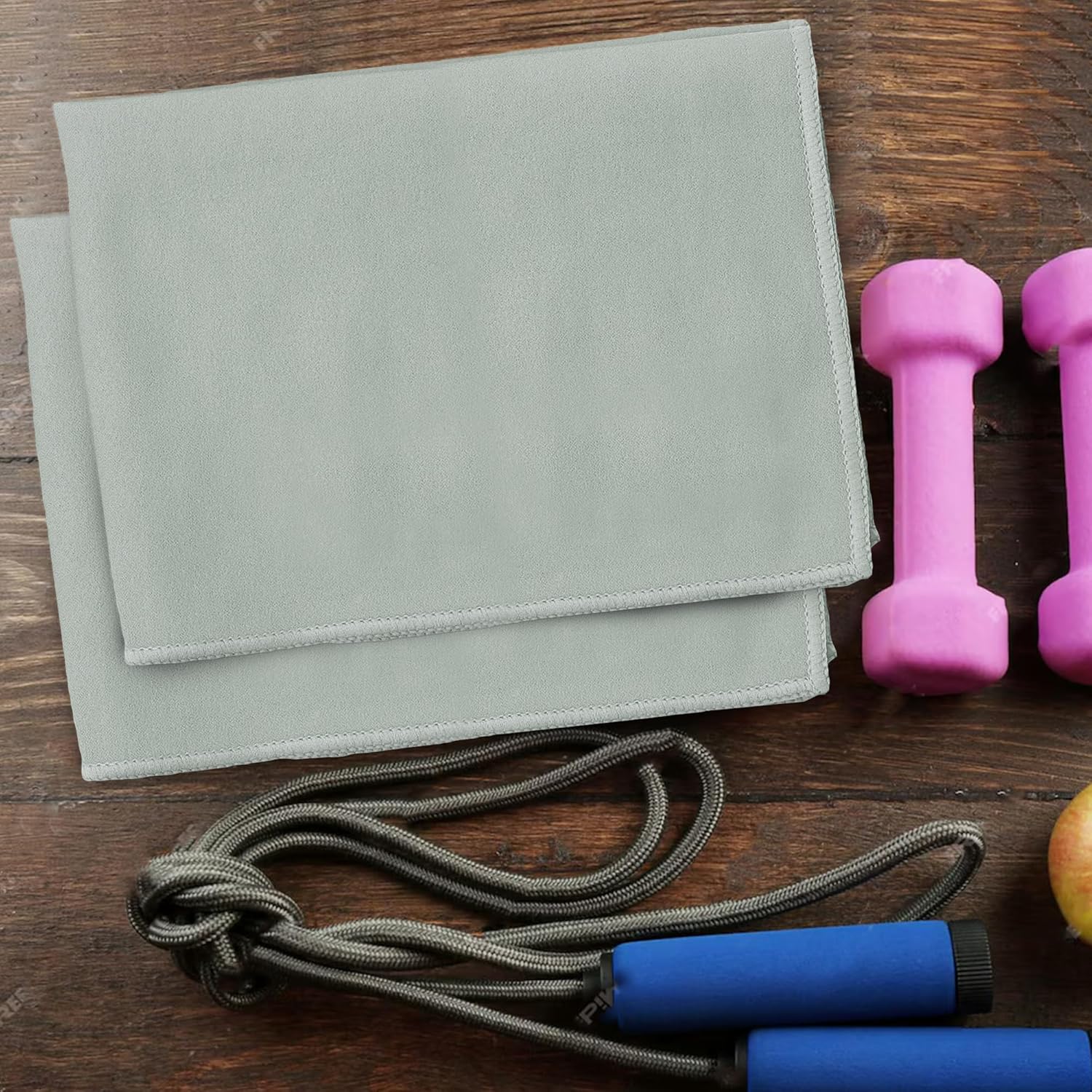 Package Contents: 2 Piece of Gym Towel | Dimension (Size) : 42 x 55 cm or 16 x 22 inches, 300 GSM, Material : Microfiber , Pattern : Solid, Color : Light Grey
