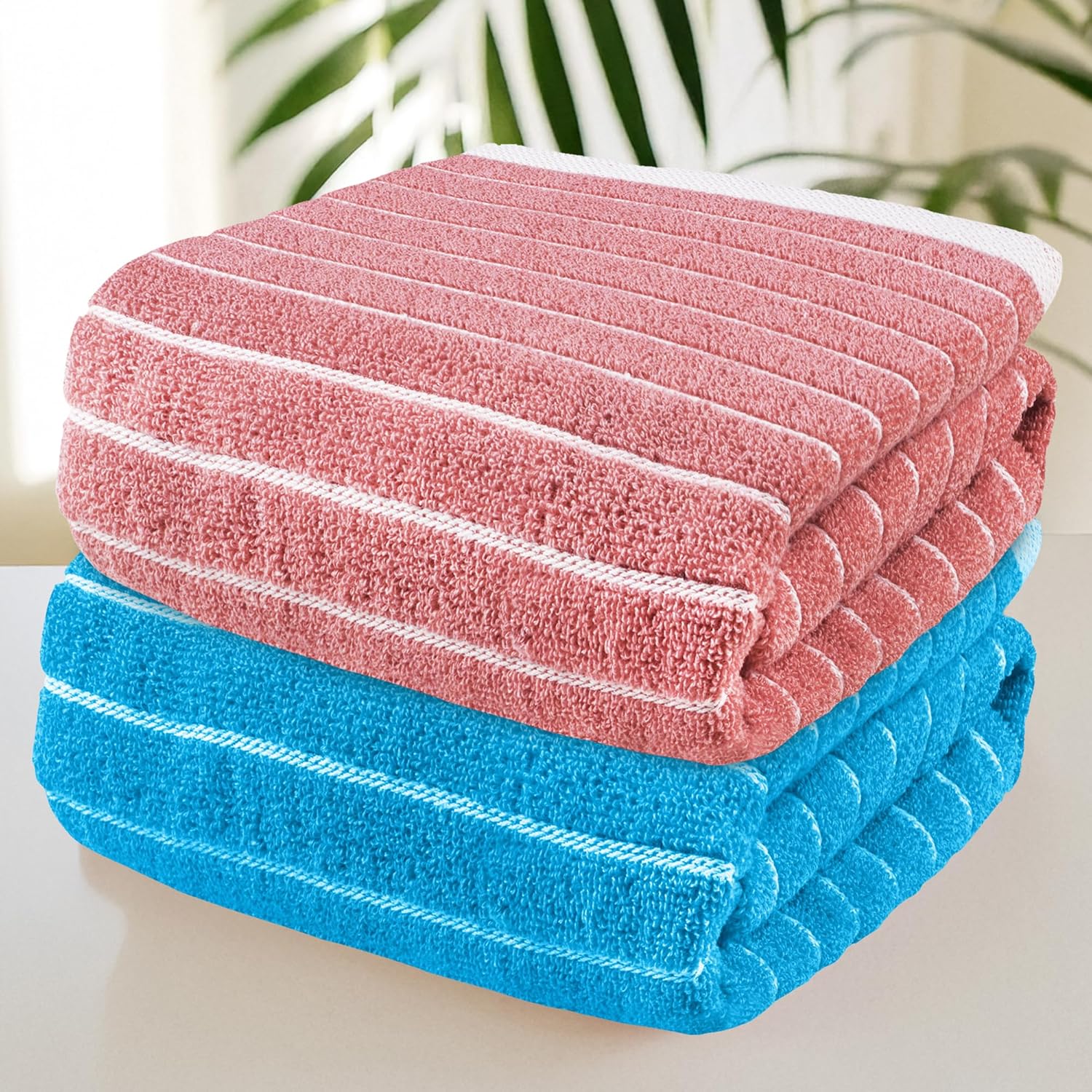 Story@Home Towels for Bath Large Size | Set of 2 | 400 GSM Quick Dry Bath Towel | 70 x 140 cm | Pink – Blue | 100% Cotton Bath Towels for Men, Women & Kids | Gym Towel | Perfect for Everyday Use