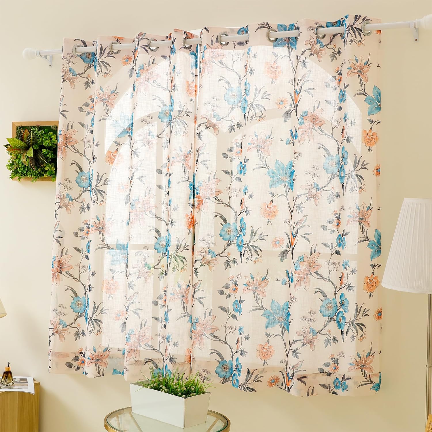 Package Contents: Pack of 1 AURUM Window Curtains | Dimension (Size): 118 x 152 cm or 46 x 60 inches, Pattern: Floral, Material : Polyester, Color : Cream & Blue | Story@Home sheer window curtains ideal curtains for bedroom, curtain window is allowing natural light to softly filter into your space, sheer curtains 5 feet is ideal use for home decor items, home decoration items for living room, room decoration items for bedroom, pooja decoration items, office curtains for window & home furnishing