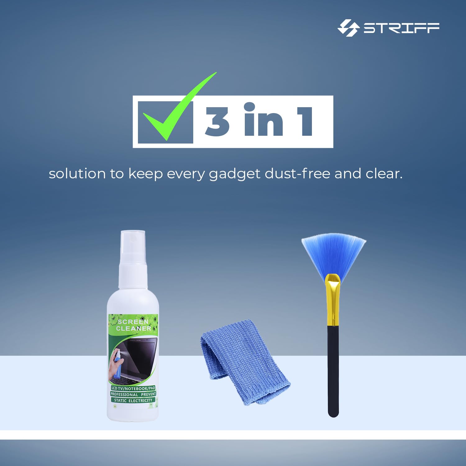 STRIFF Professional 3-in-1 Laptop Cleaning kit, Laptop Cleaner, Screen Cleaner, Mobile Cleaning kit, Cleaning Kit for Camera, Lens, Binocular, Laptop, TV, Monitor, Smartphone, Tablet