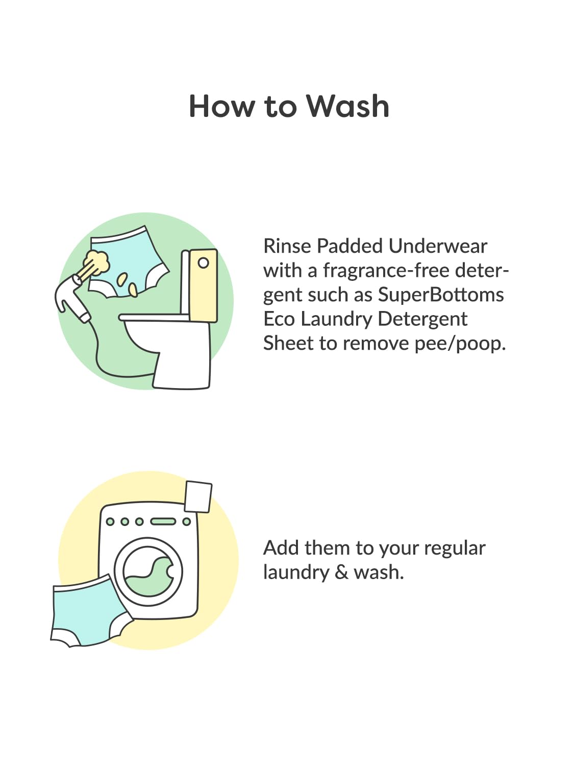 Unlike regular training pants, SuperBottoms Padded Underwear contains no sponge or synthetic padding, making it breathable, rash-free, and ideal for your baby’s delicate skin. Padded Underwear is suitable for both boys and girls. These are the perfect padded underwear for kids learning to potty train.