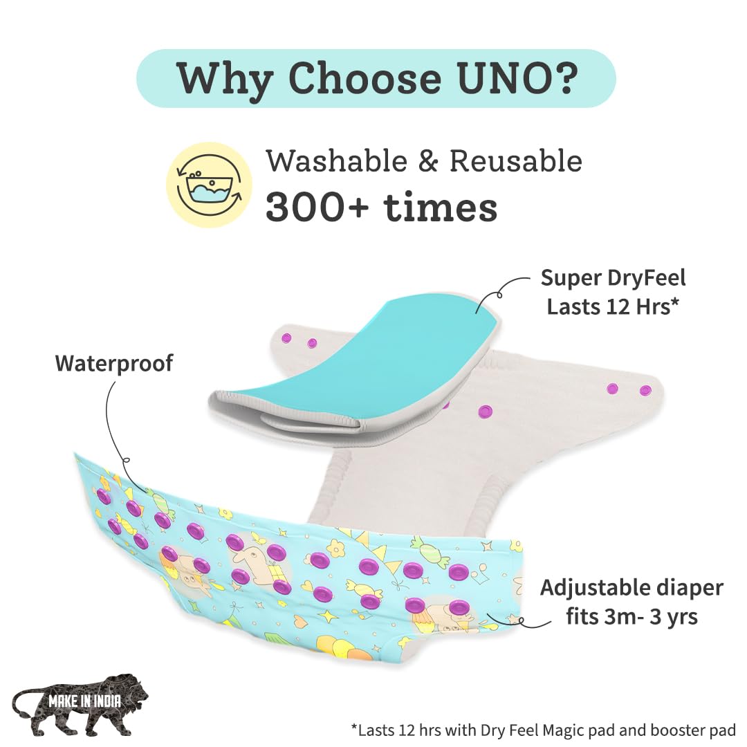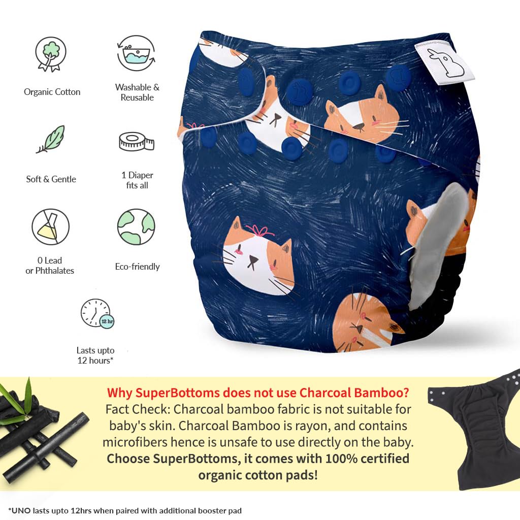 SuperBottoms Reusable and Washable Cloth Diapers for babies – Cloth Diaper Freesize UNO- New Version| Reusable Cloth Diapers for babies 0 to 3 years | Combo pack of 1 Diaper + 1 Cloth Diaper Insert