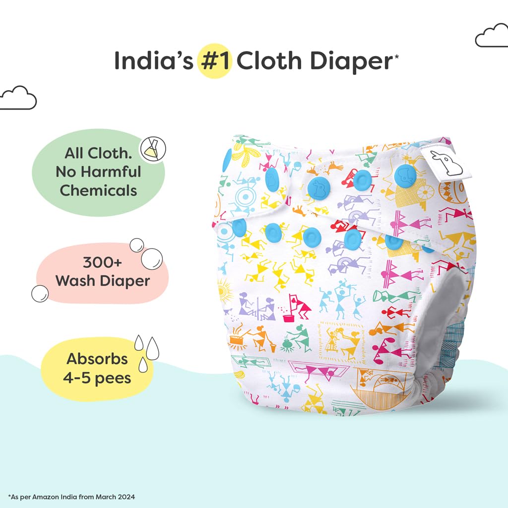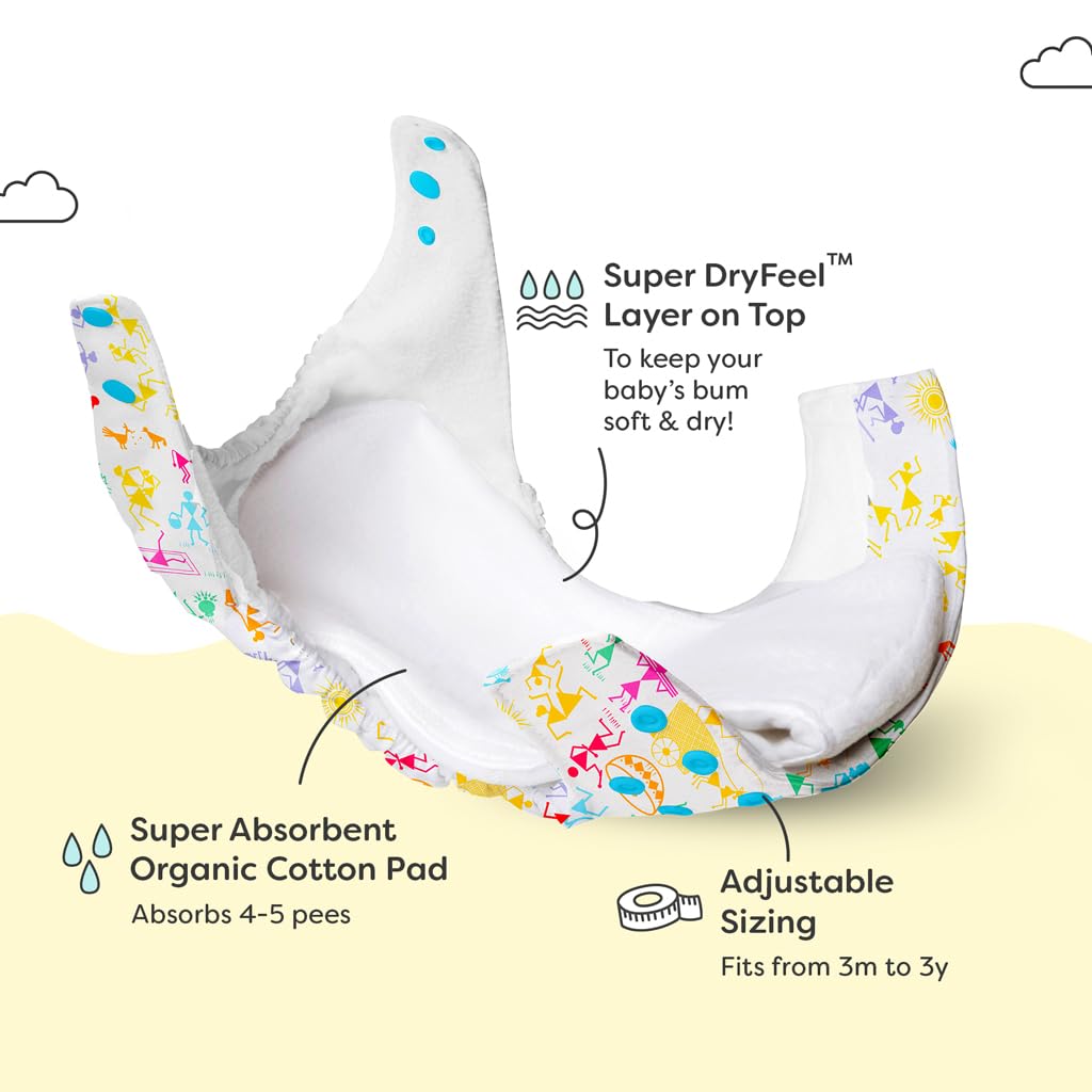superbottoms UNO Freesize Premium Cloth Diaper for babies (3m-3y) + Organic Cotton Pad | Washable & Reusable 300+ Times | Superior Absorption | Waterproof | Super Soft & Gentle – White-warli, 1 count