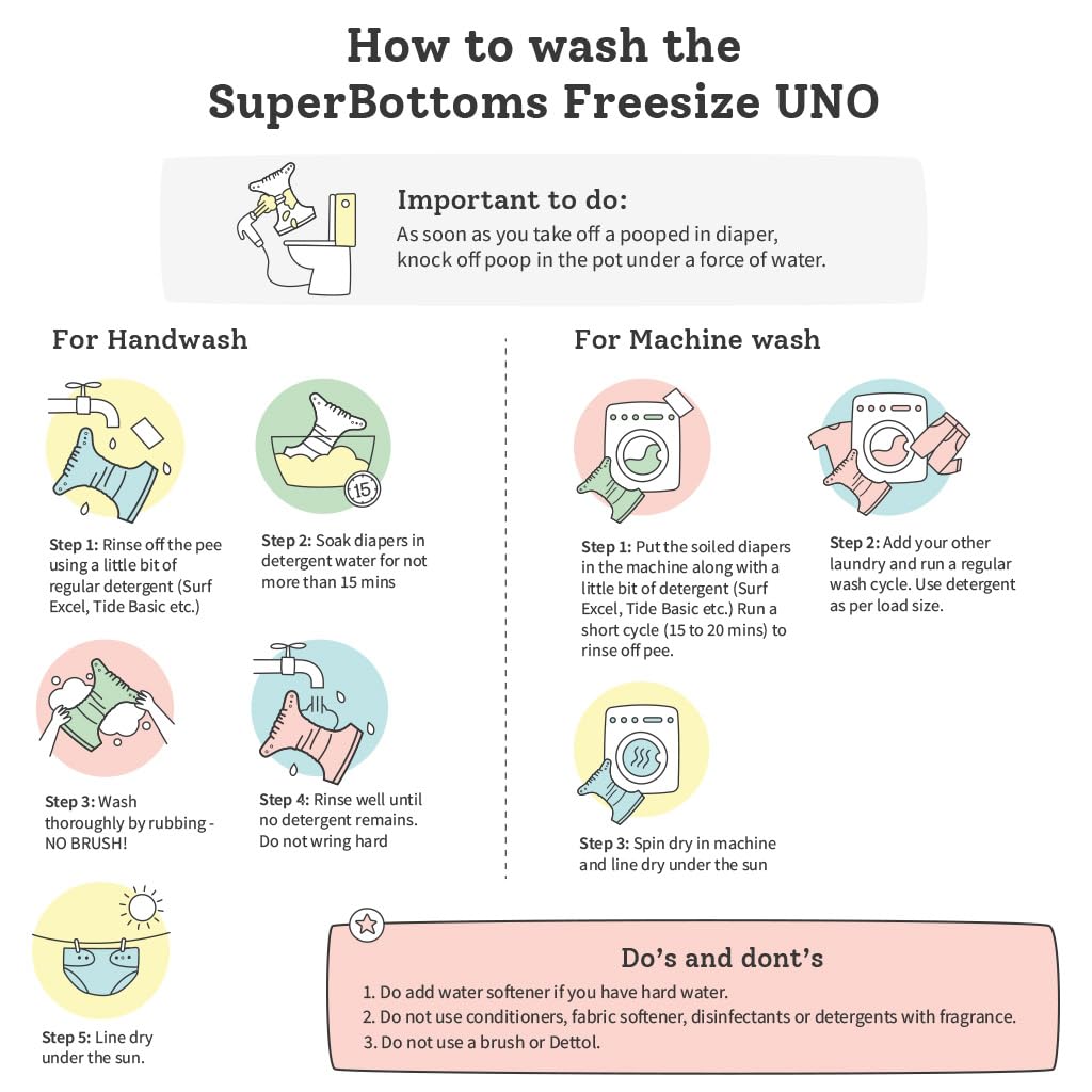 Washable & Reusable 300+ Times: You only need 16 UNO Cloth Diapers over 3 years, which is both eco-friendly and cost-effective. Just ₹2 Per Use: By using UNO Cloth Diapers, you cut your diaper costs by 74%, saving you lots of money with each use.