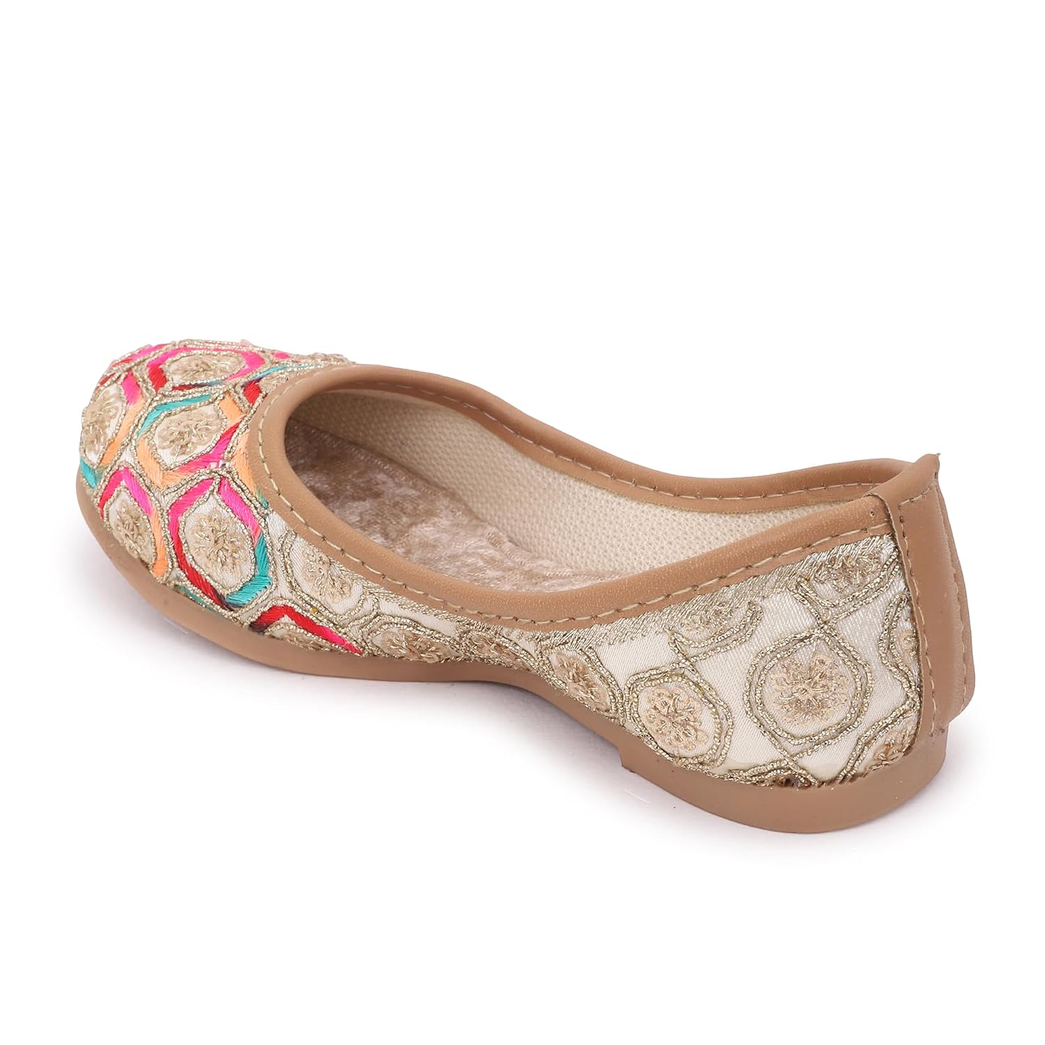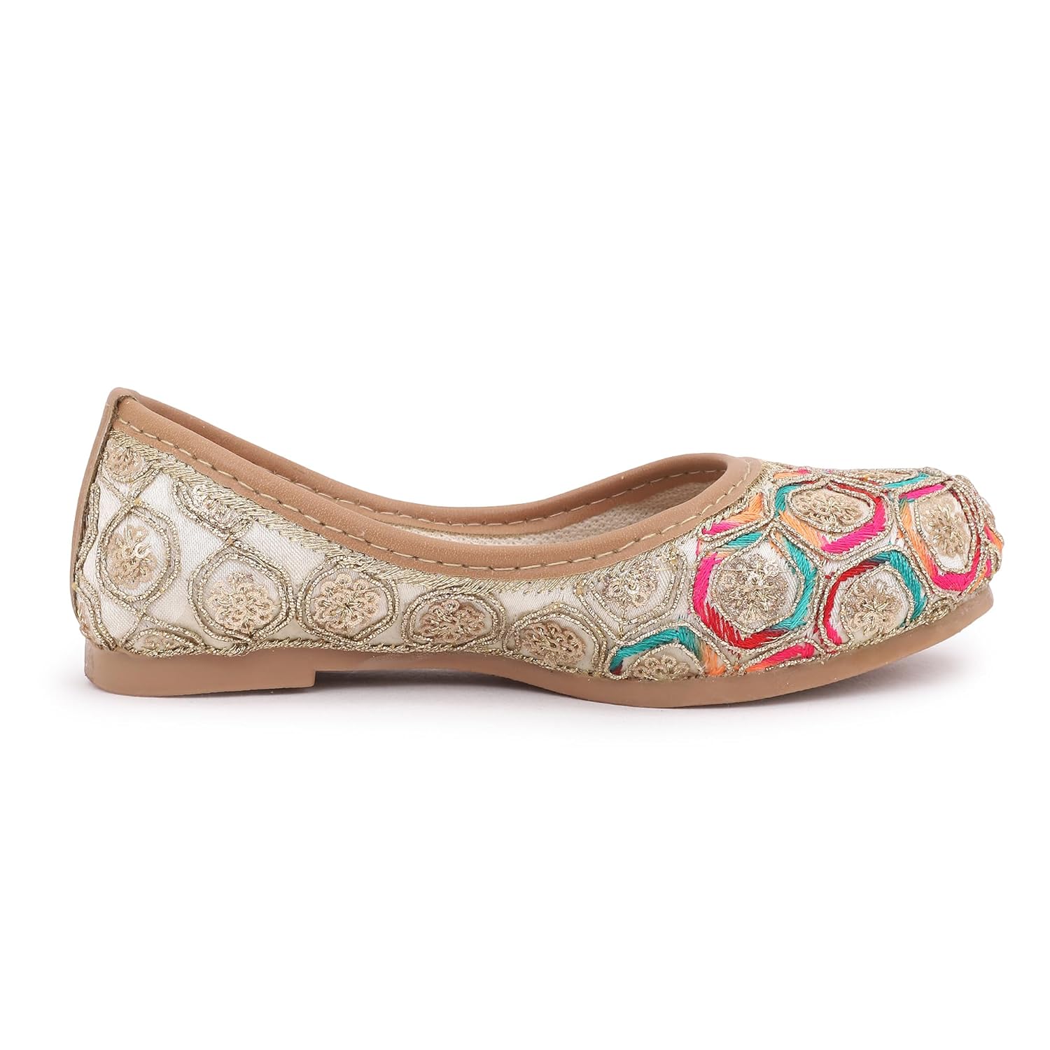 Superminis presents the Paisley and Flower Design Girls Juti, a beautifully handcrafted footwear inspired by traditional Punjabi craftsmanship. Featuring intricate embroidery with glitter ornamentation, these ethnic Punjabi Jutis blend timeless paisley and floral patterns to create a charming and elegant design. Made for both style and comfort, these jutis come with a foam-based inner sole, making them ideal for long hours of wear during school, parties, festive occasions, or daily outings. The versatile design effortlessly enhances traditional attire like salwar suits for a vibrant Punjabi touch while also adding flair to western outfits for a trendy casual look. The Superminis Paisley and Flower Design Girls Juti combines exquisite craftsmanship, stylish details, and everyday comfort, making it the ideal choice for girls aged 5 to 11 years.