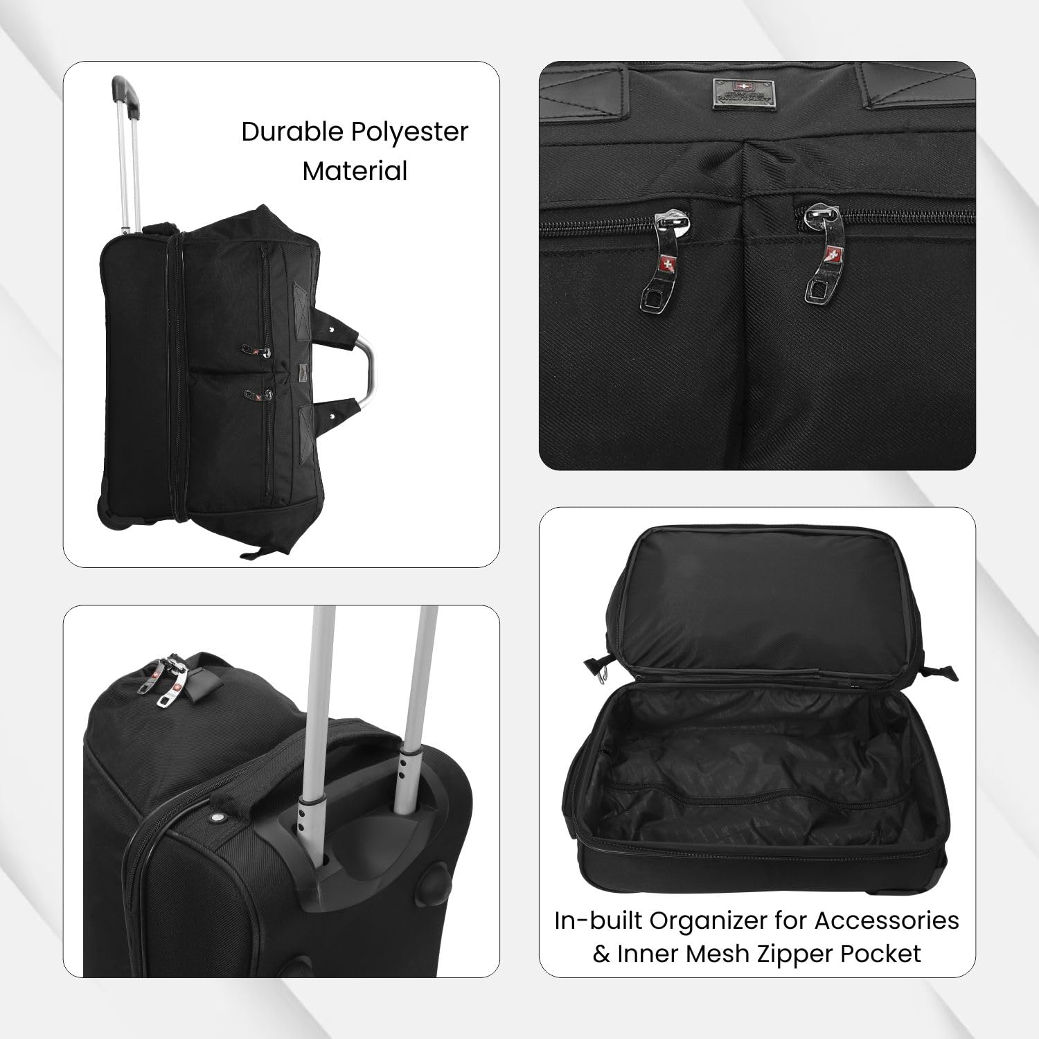 Swiss Military Fatboy 45cm Double Decker Duffle Trolley Cum Overnighter Travel Bag, 55L Capacity, 100% Polyester with Quick-Access Pockets, Organizer, Hardback Compartment & Smooth Mobility