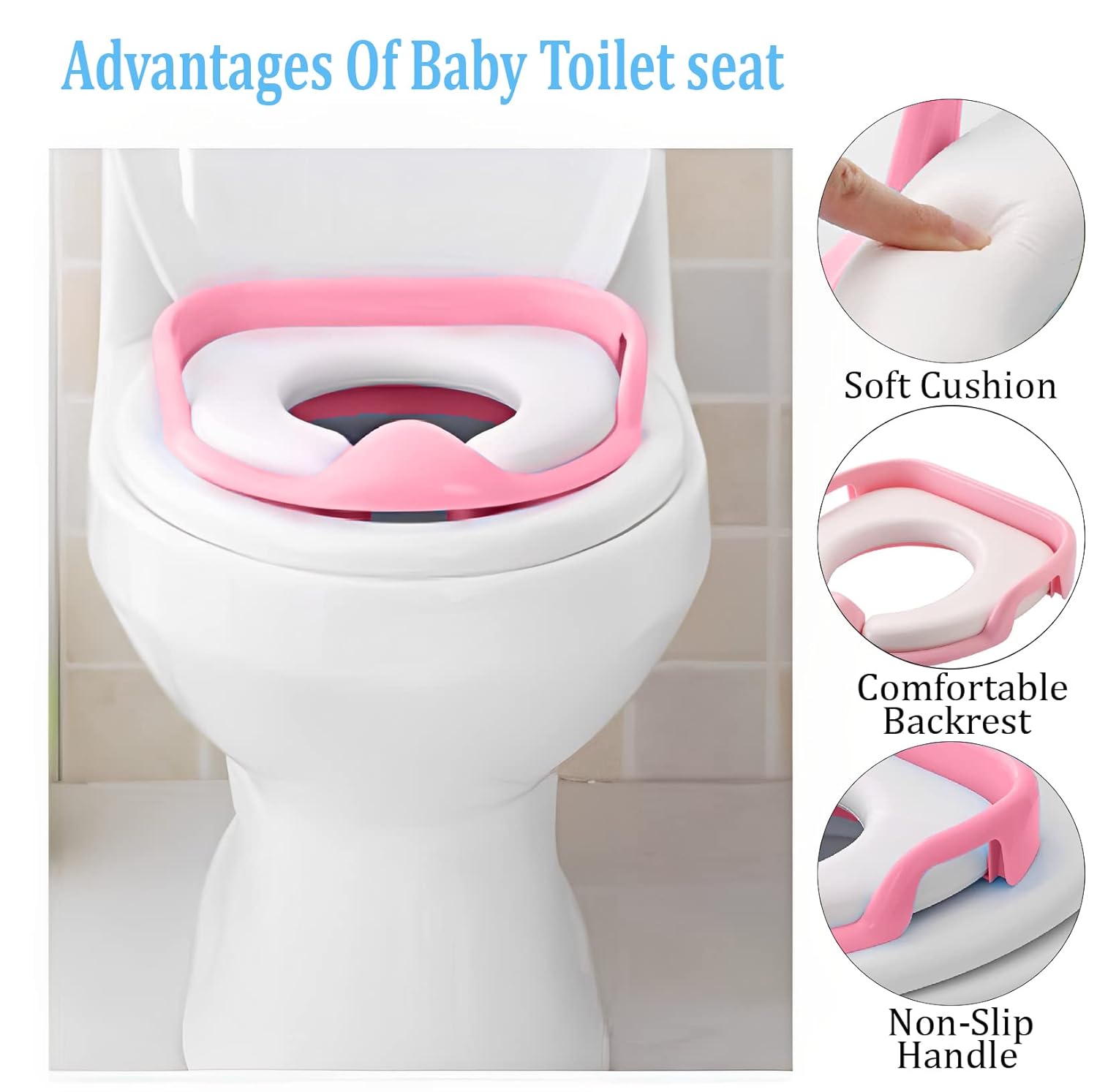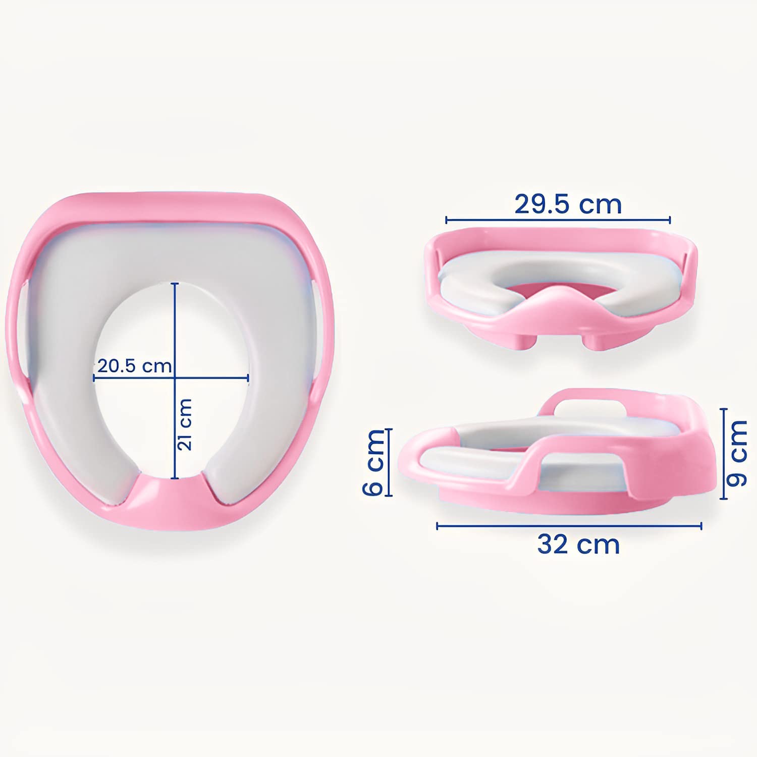 Cushioned potty seat Easy to place on top of a standard-sized household toilet
