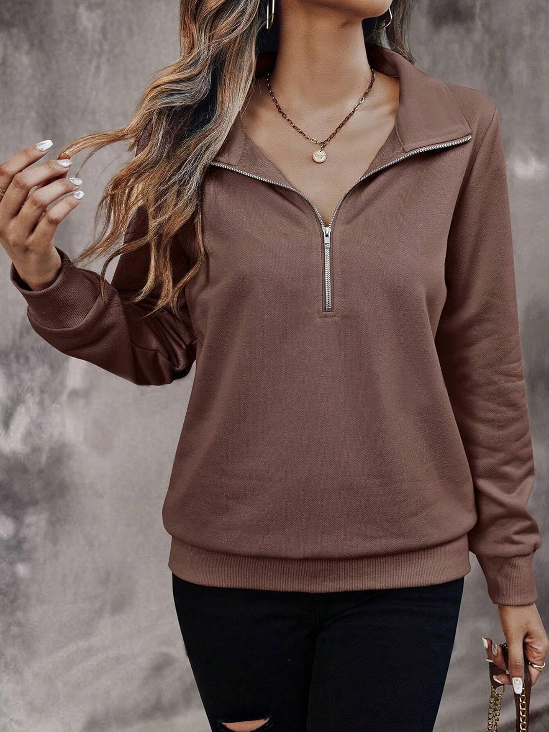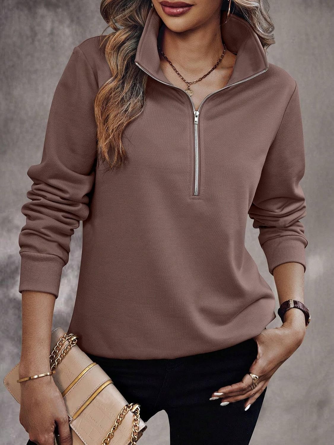 Generic Name : Women’s Solid Half Zip Sweatshirt – Casual High Neck Pullover Top with Long Sleeves | Trendy Fall & Winter Wear