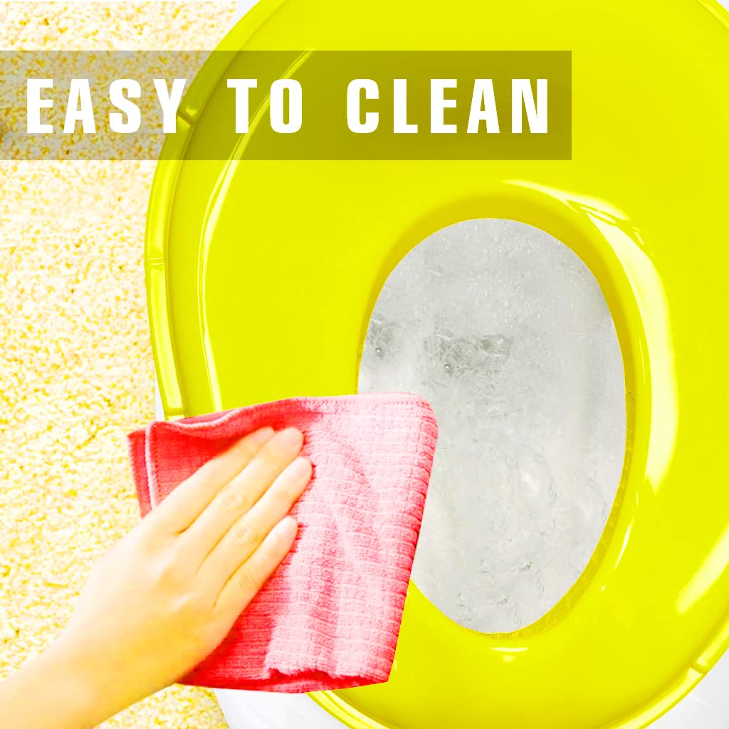 Vibrant Color attracts your child Very Safe Because Made With High-Grade Plastic Non-Toxic Material.Like you, we’re committed to baby safety and have made it our one priority.Techhark training toilet potty seat is specially designed with an Anti-Slip rubber rim on the bottom to increase the stability of the potty ring on adult toilets and to prevent the potty from moving from side to side.100% safe and durable to use.